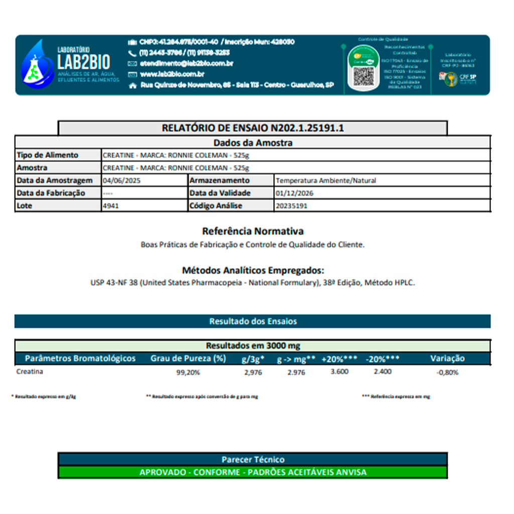 Combo 2x Creatina Refil 100% Pura 525g Ronnie Coleman Kit Importada Original