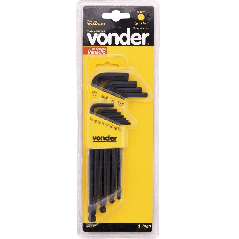 Jogo de Chaves Allen 1/16" a 3/8", Abauladas com 12 Peças, Vonder VDO716