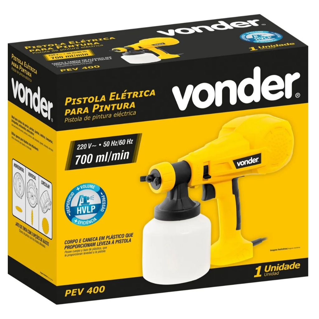 Pistola Elétrica Para Pintura Pev400 Hvlp 700ml Vonder Cor Amarelo/Preto