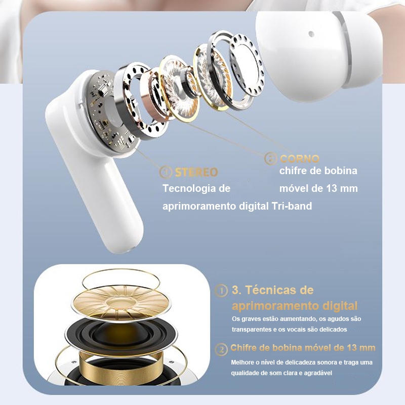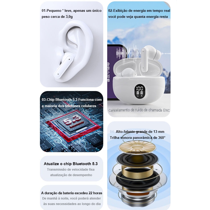 Fone De Ouvido bluetooth 5.3 Sem Fio tws Estéreo 10D HIFI Som Panorâmico 360° ACS