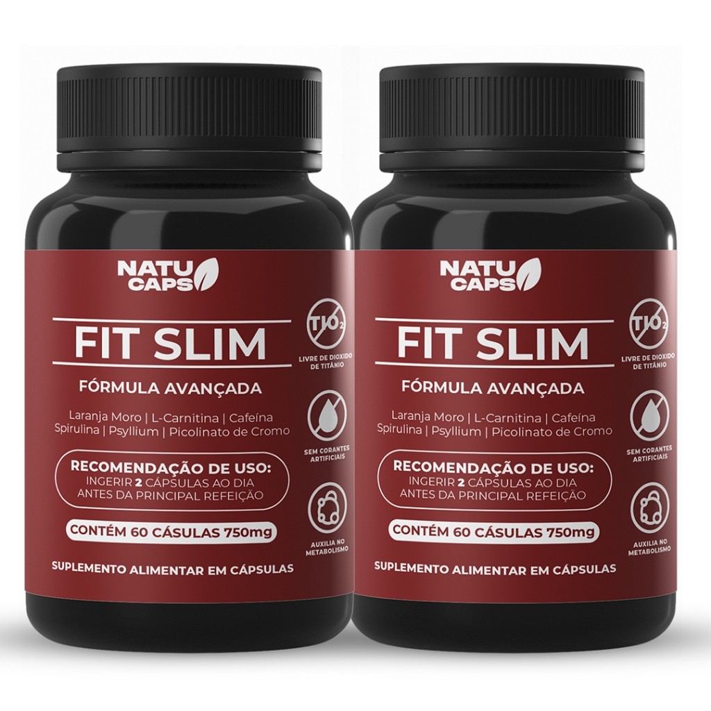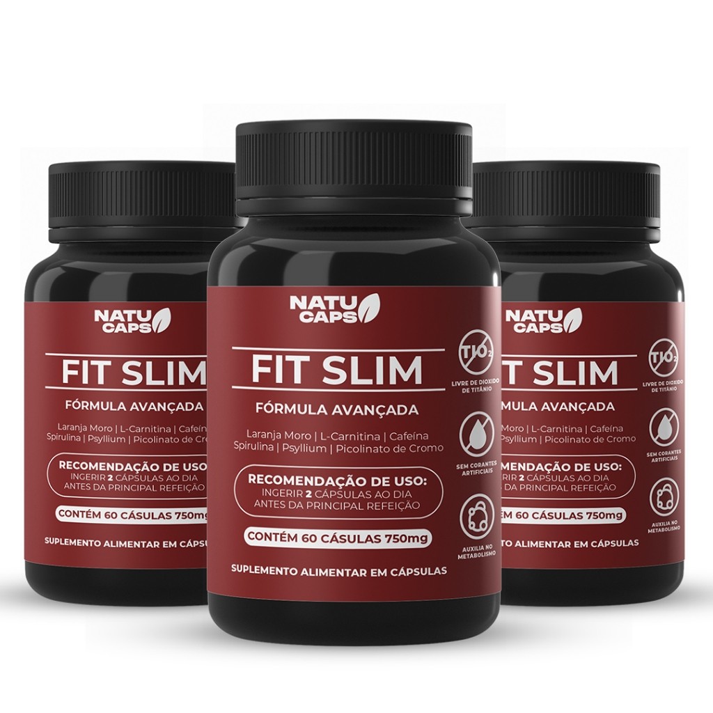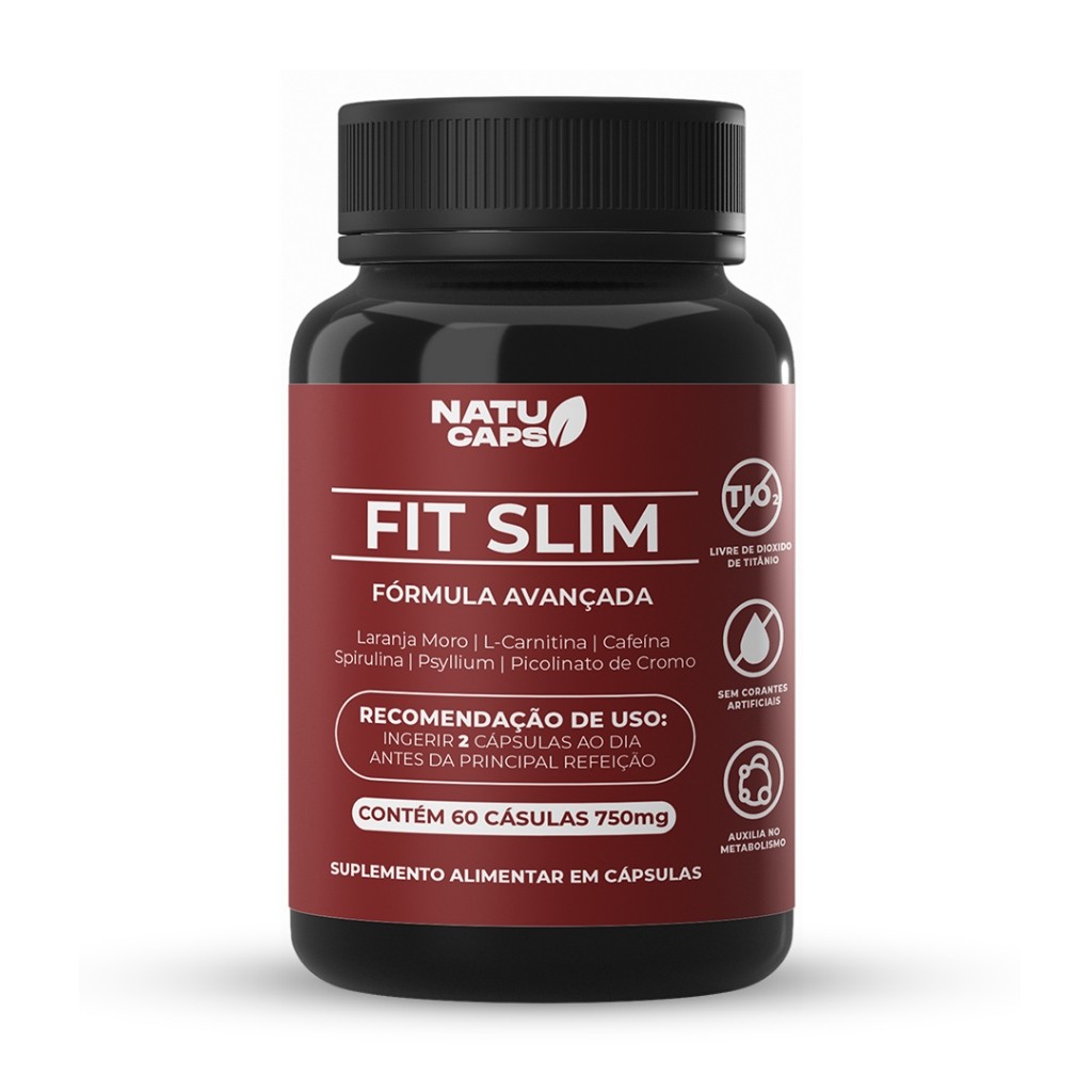 Fit Slim 60 Capsulas por Pote • Suplemento Alimentar com Cafeína 200mg • Energia para o Dia.