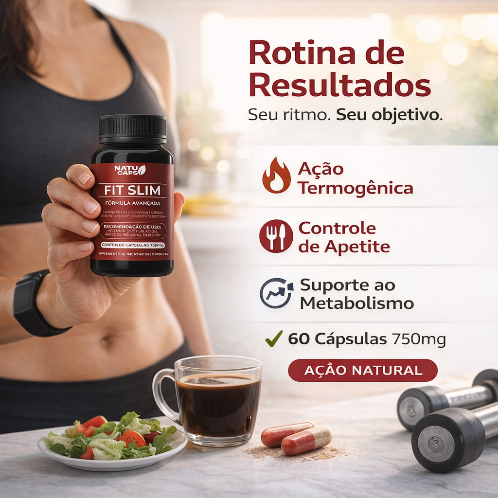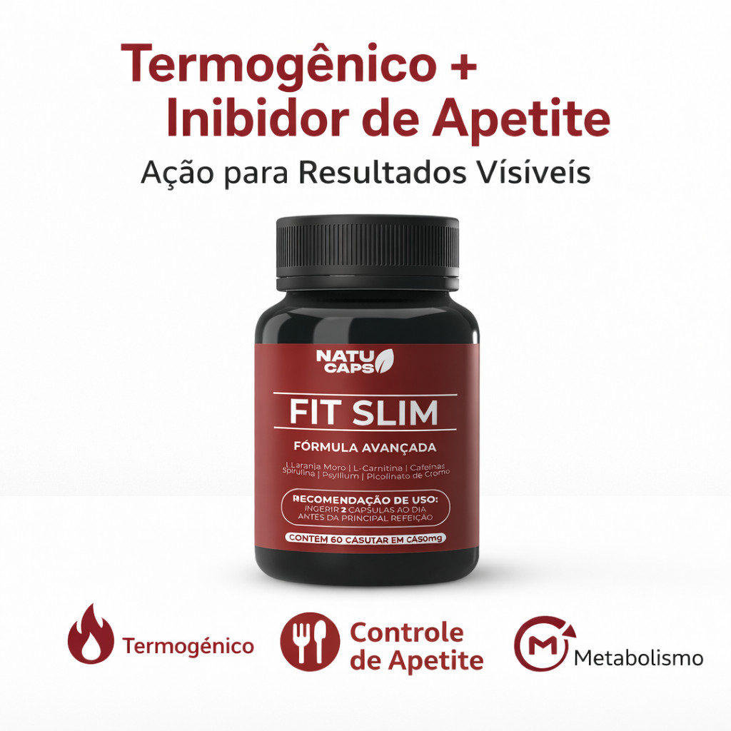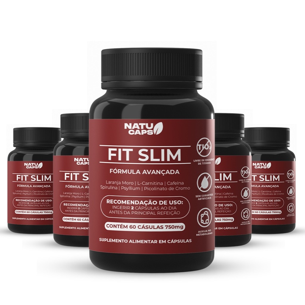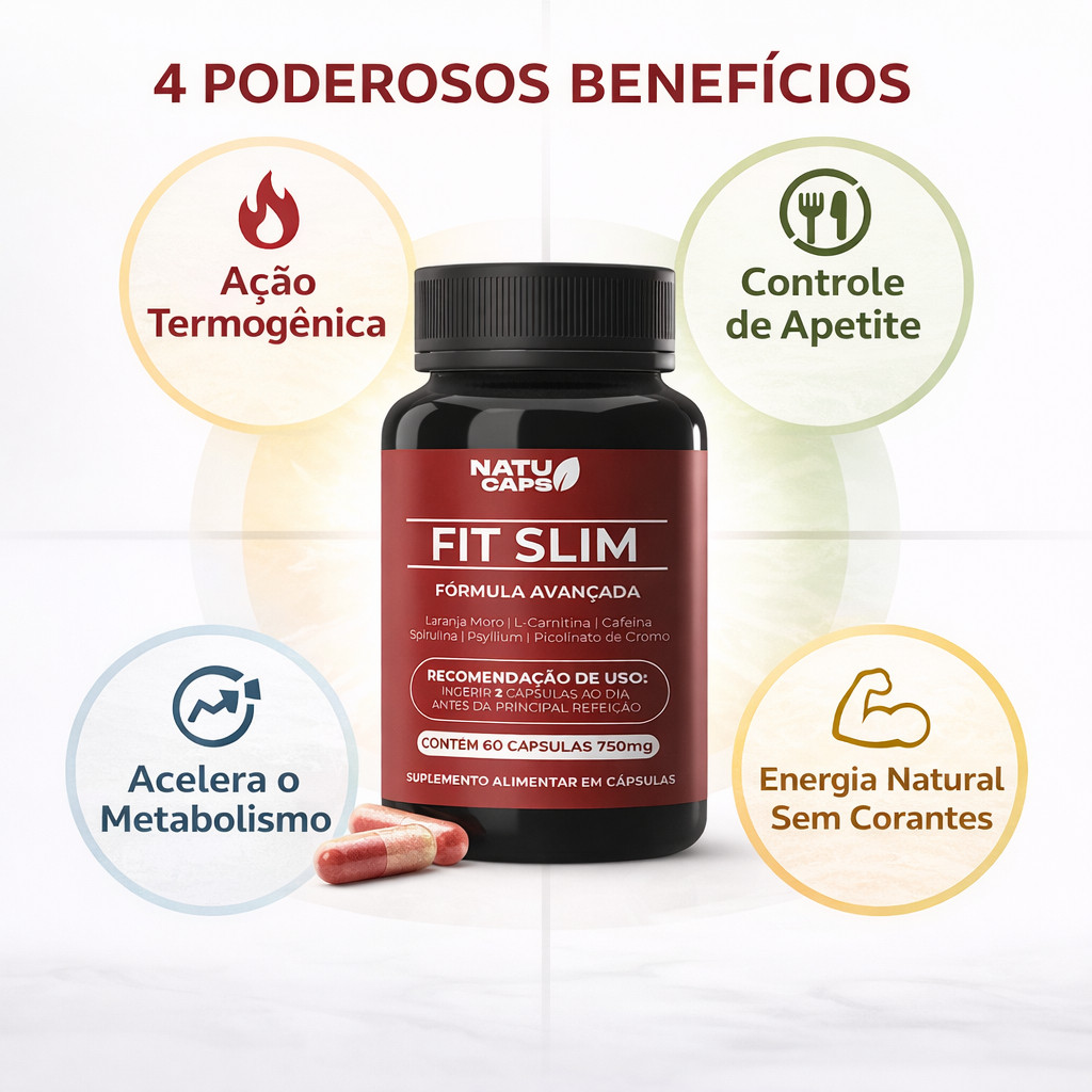 Fit Slim 60 Capsulas por Pote • Suplemento Alimentar com Cafeína 200mg • Energia para o Dia.