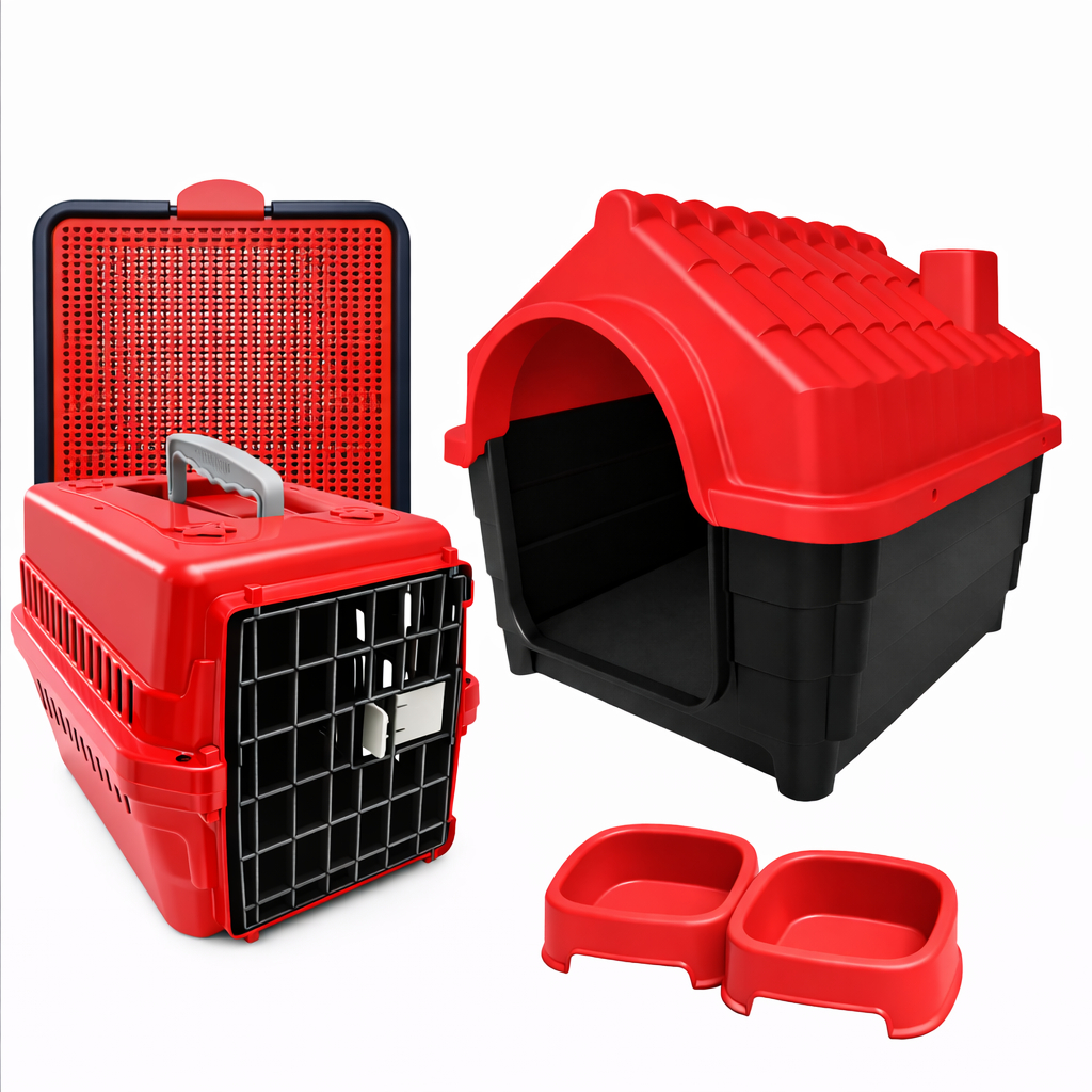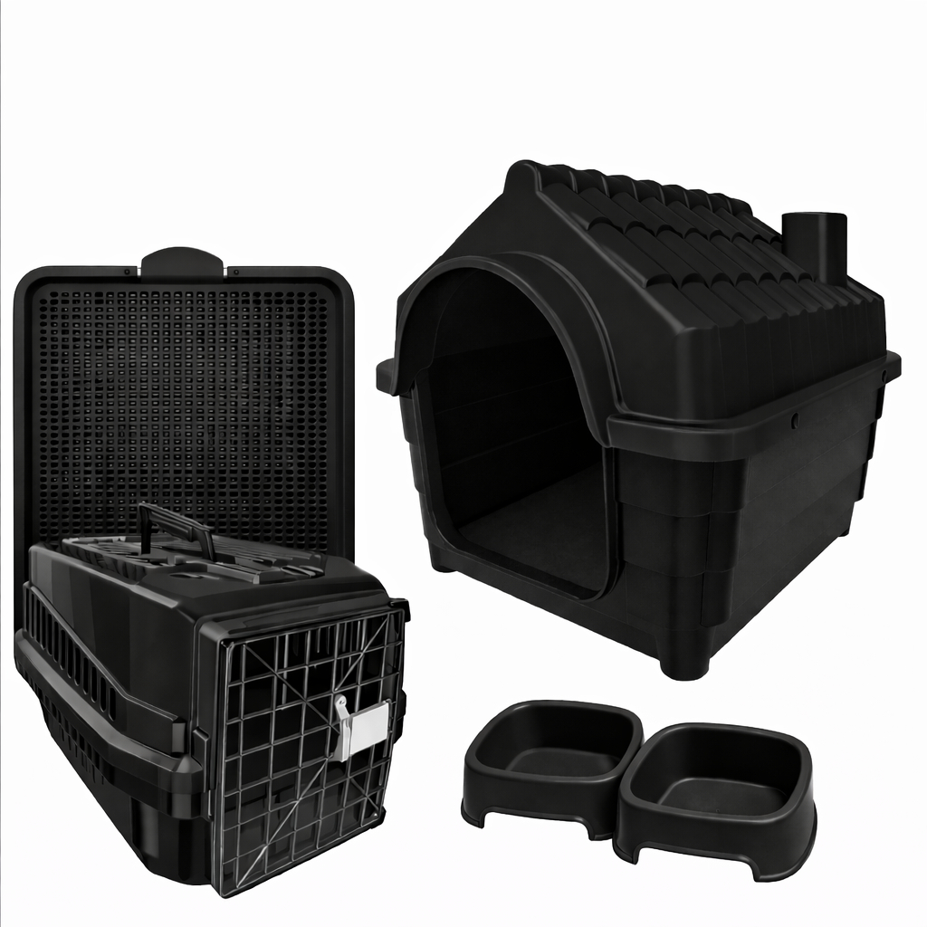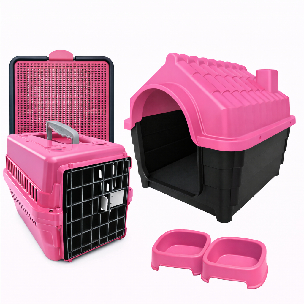 KIT Raças Pequena Dog/Gato Cachorro Casinha Nº2+Transporte Nº2+Caminha+Sanitário+2 Comedouros