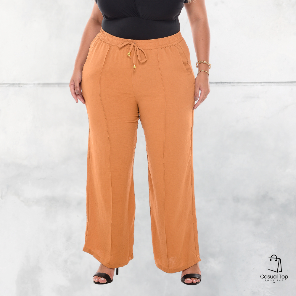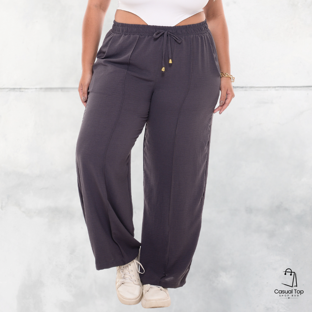 Calça Pantalona Plus Size Com Bolso e Detalhe Nervura G1 ao G5