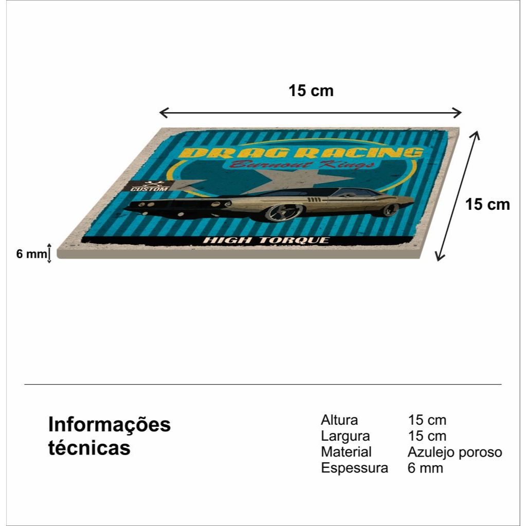 Azulejos Decorativos Caixa com 18 Peças de 15x15cm Vintage linha Carros Retrô.