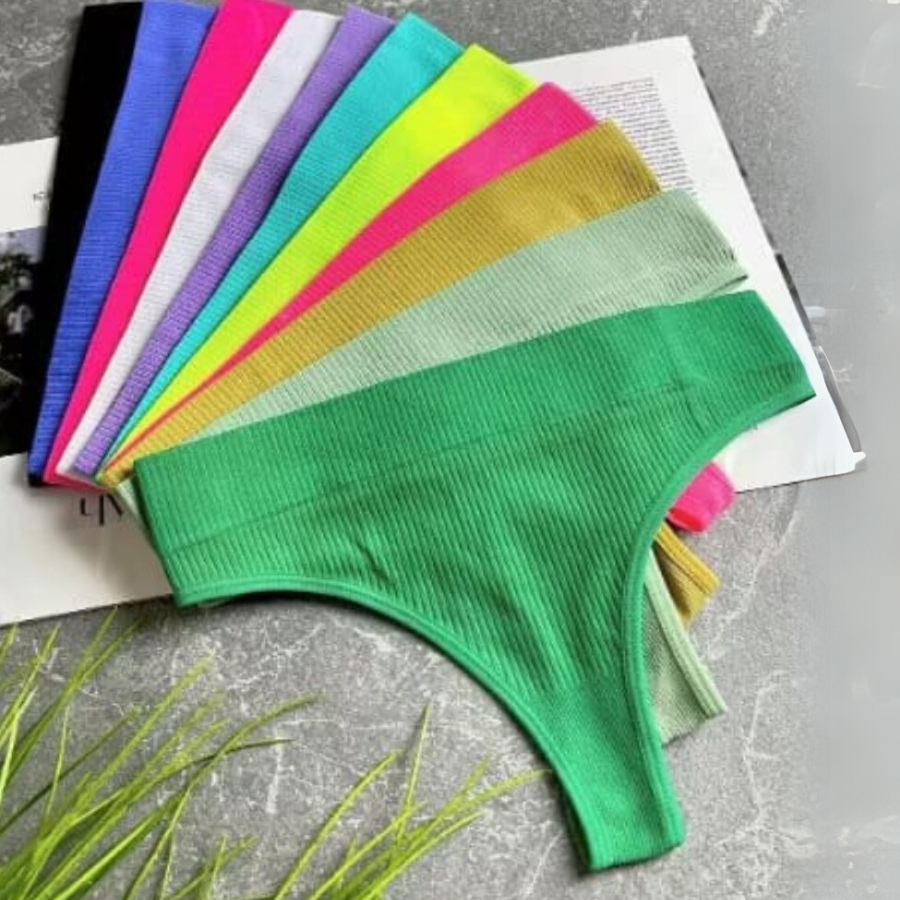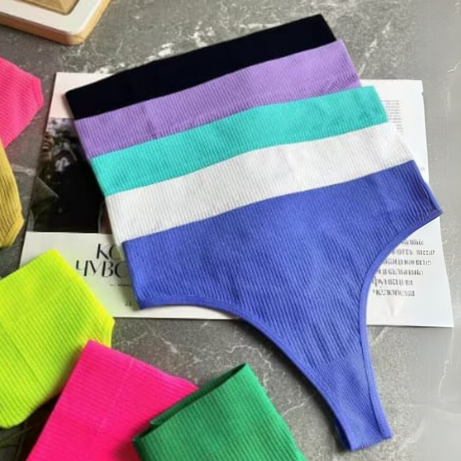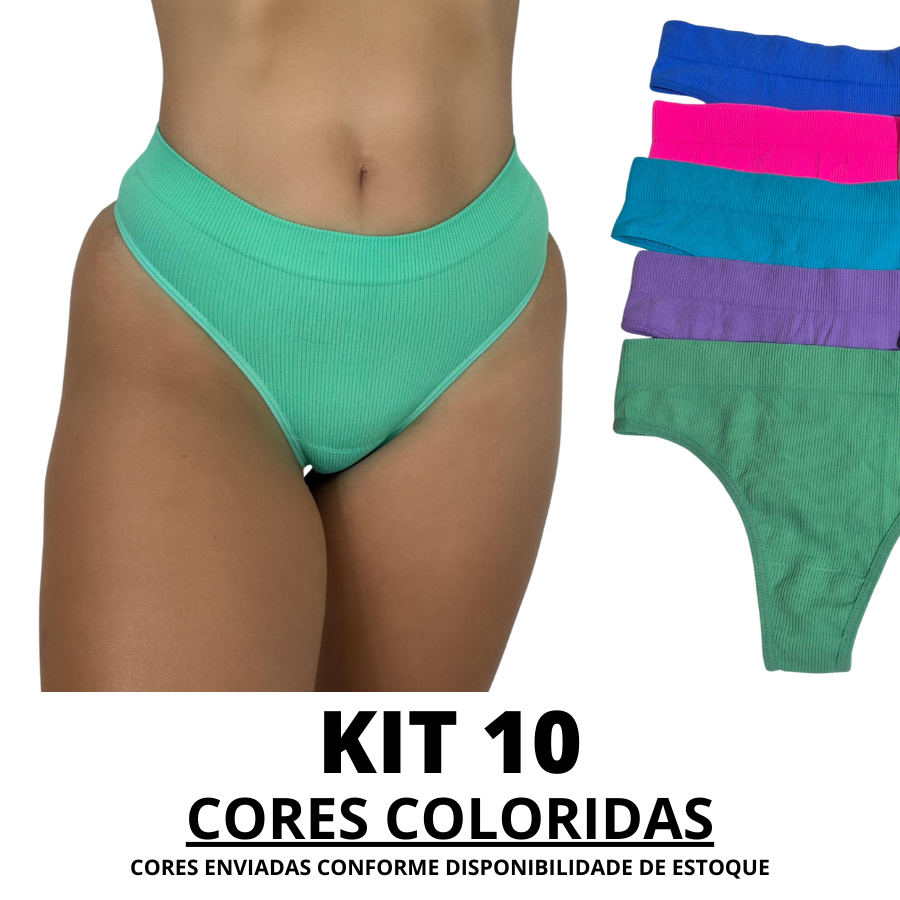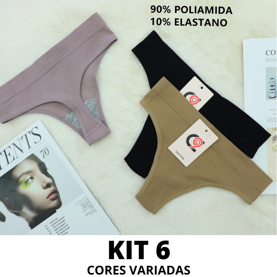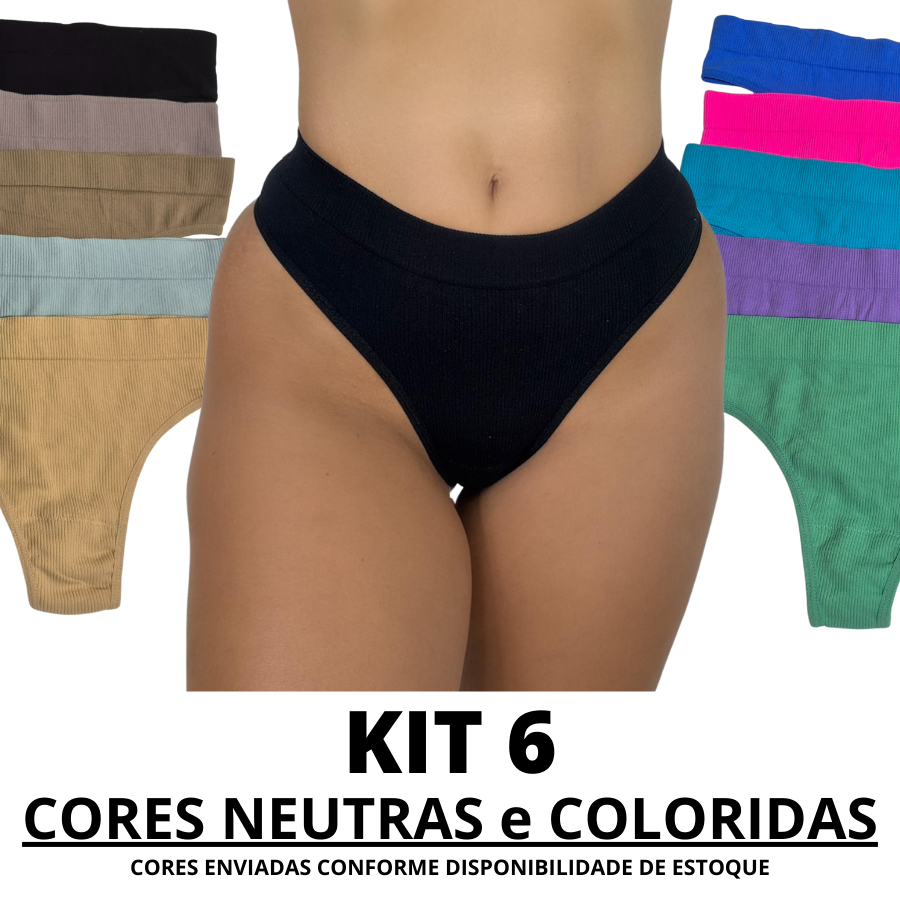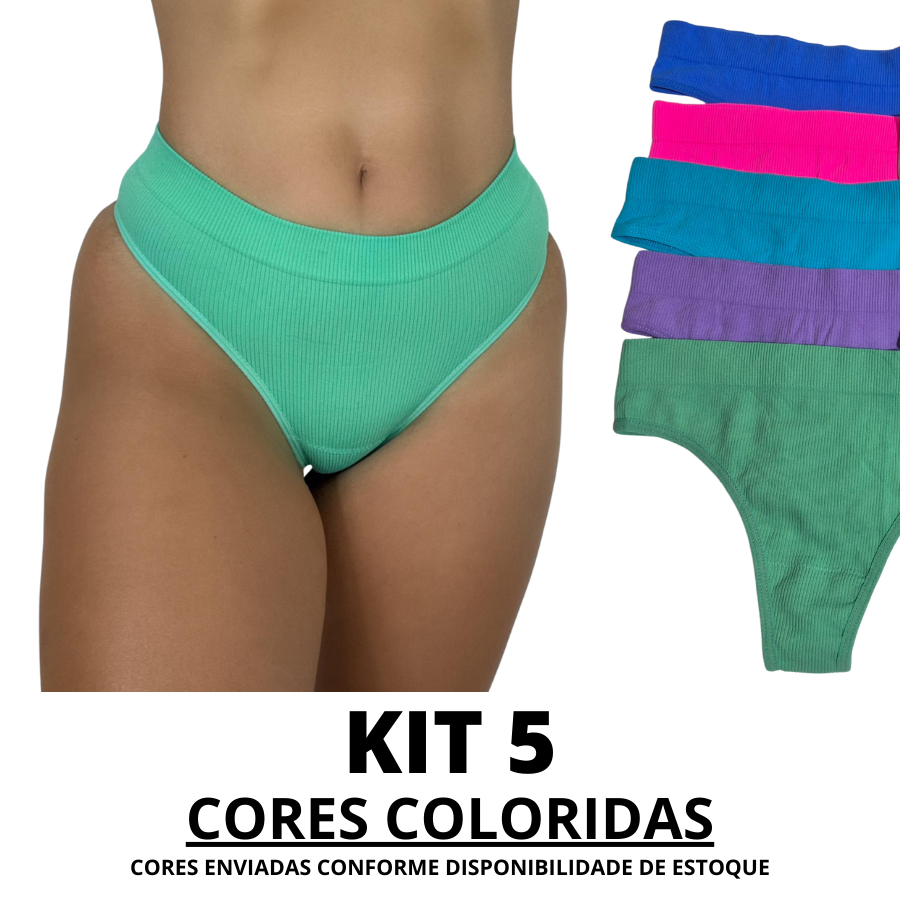 Kit Calcinhas Importadas Fio Canelada Tanga Cintura Alta Pala Dupla