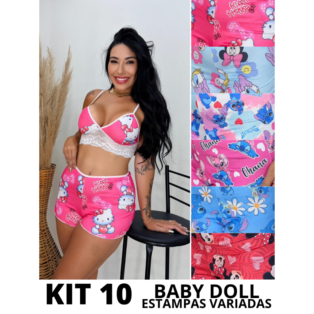 Kit 10 Baby Doll Rendinha Estampado Top Doll Suede Cropped ATACADO