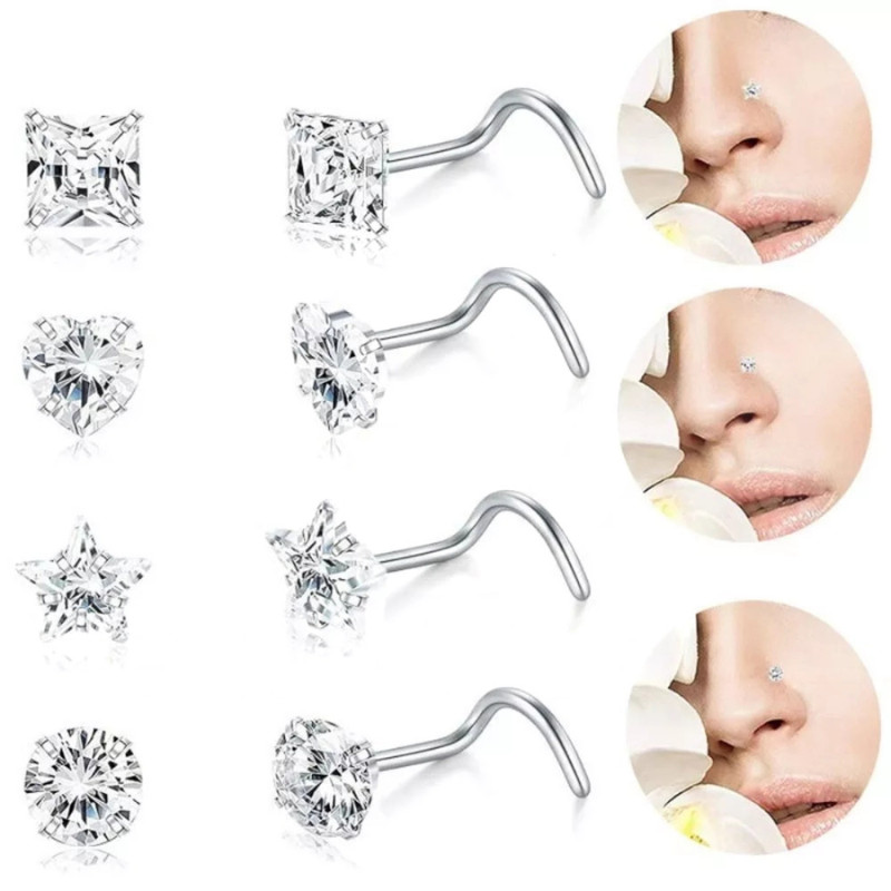 Piercing Nariz Nostril Aço Inox Zircônia Estrela Coração Bolinha Antialérgico Brilhante Resistente