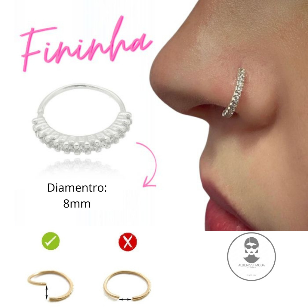 Piercing Argola Cravejado Nariz Torção 6mm 8mm Prata Dourado Zircônia Luxo