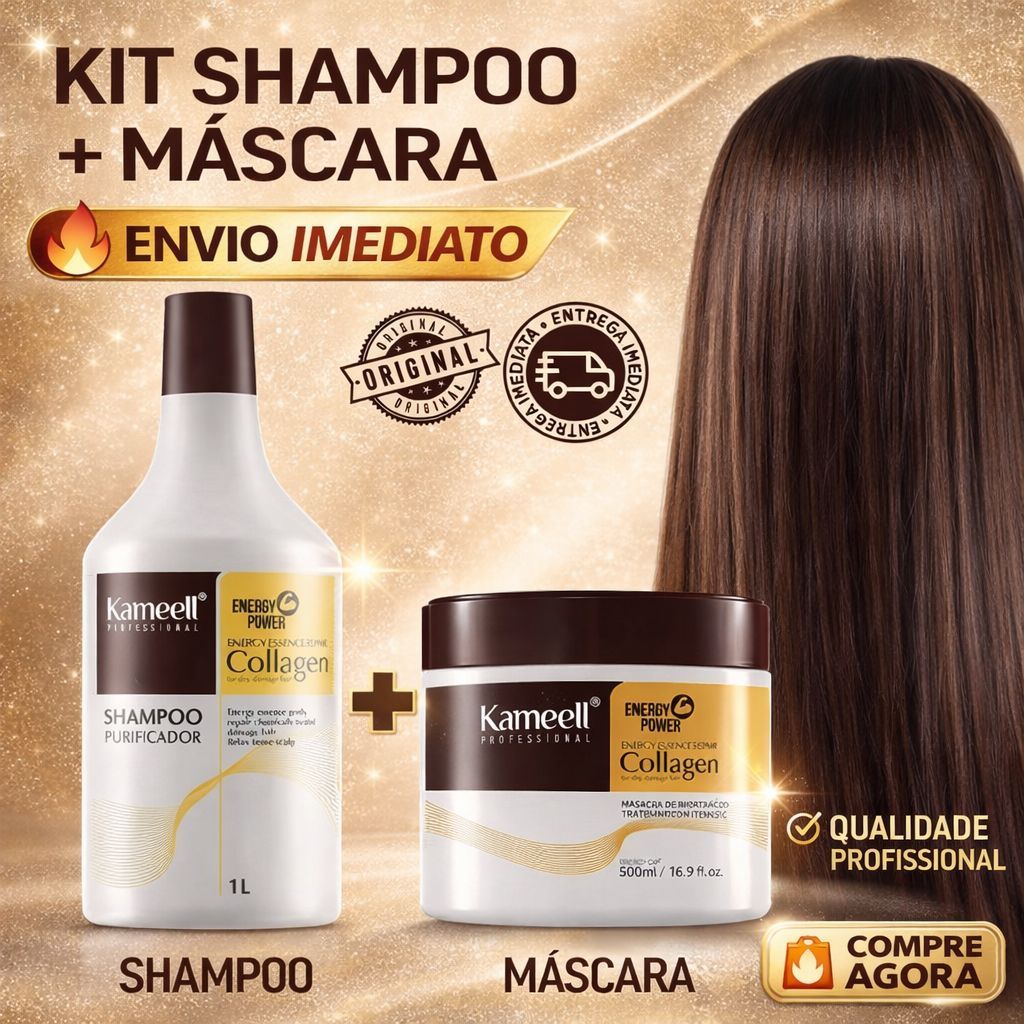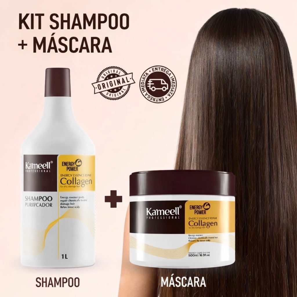 Kit Shampoo 1L + Máscara 500ml Collagen Energy Power – Hidratação Intensa, Brilho e Reconstrução Ca