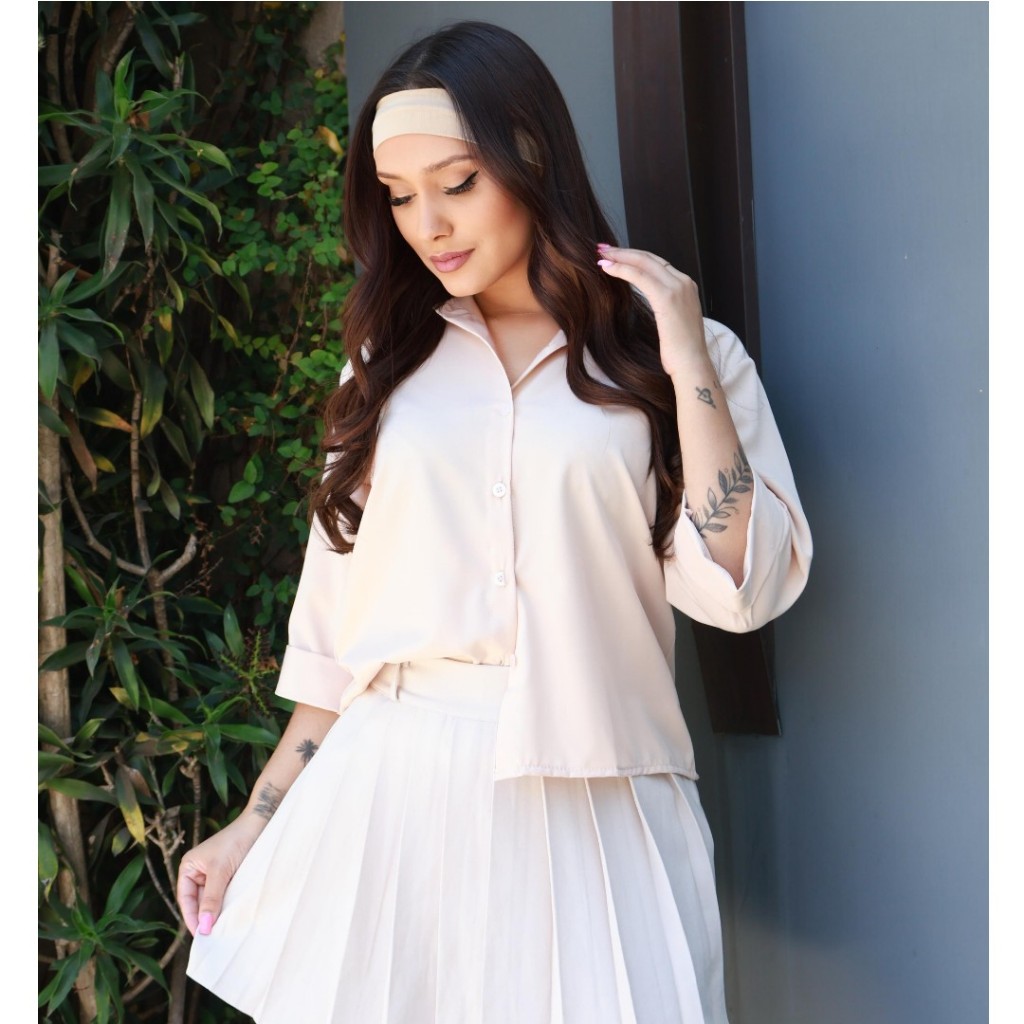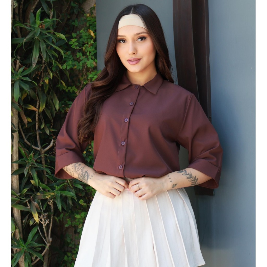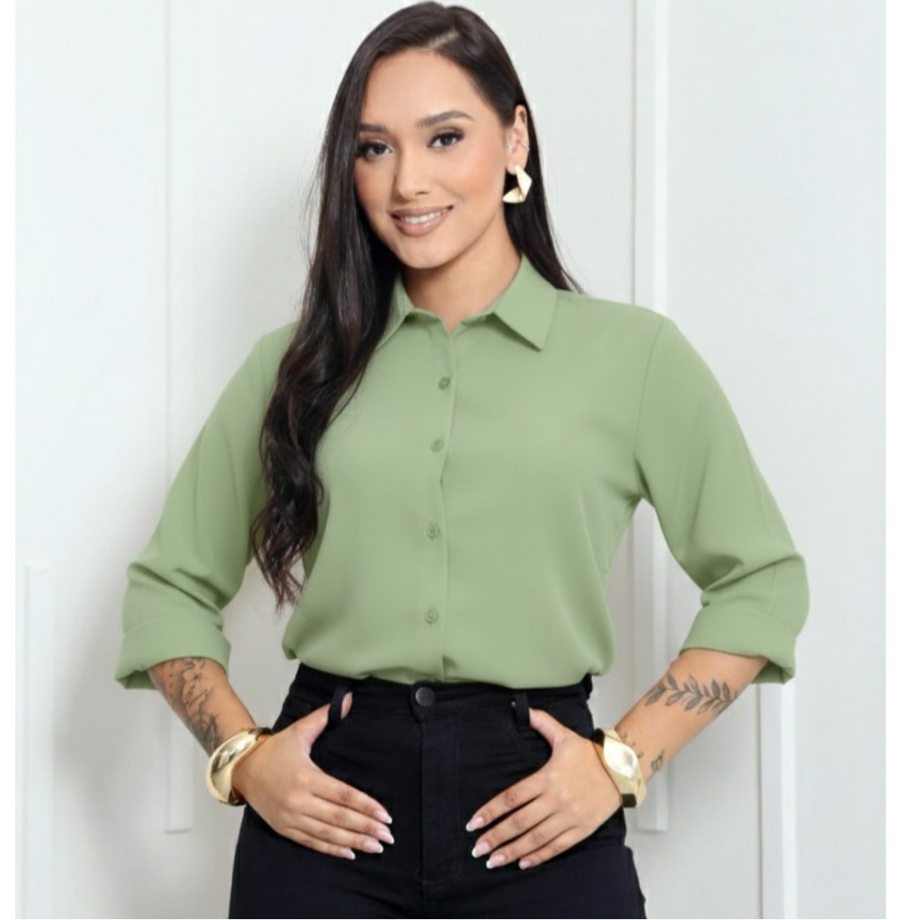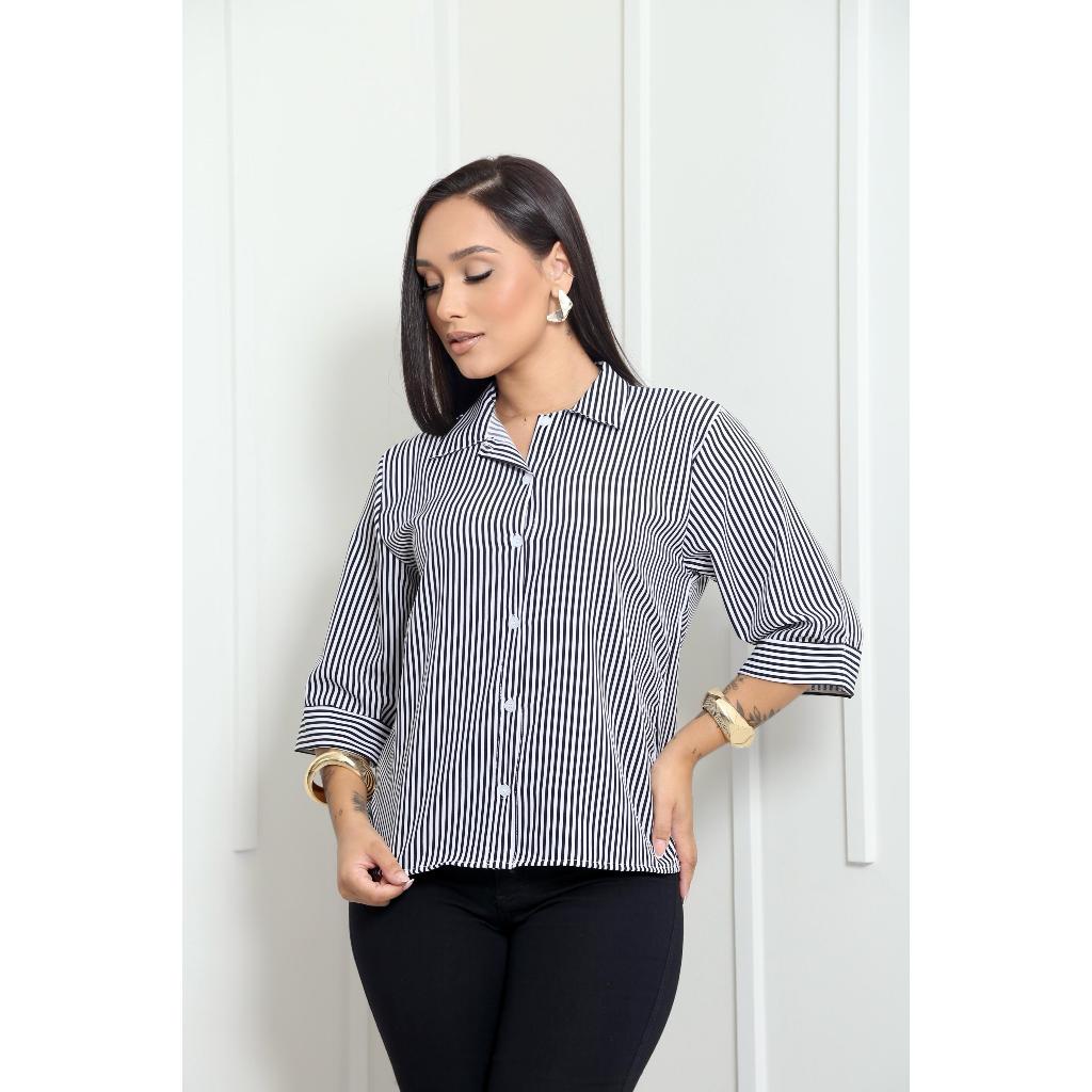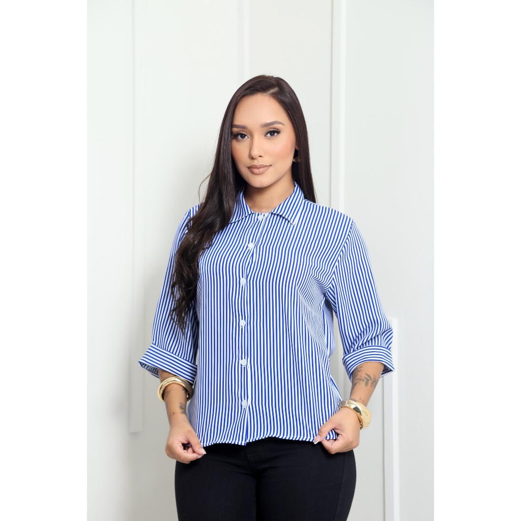 CAMISA LISTRADA E LISA FEMININA TECIDO CREPINHO 11