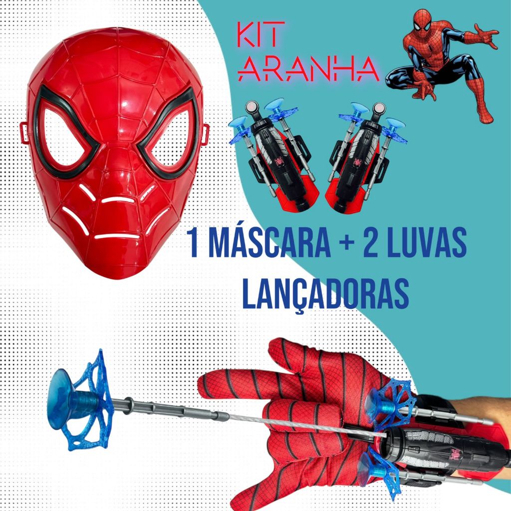 Kit Com 2 Luva Com Lançador De Teia Do Homen Aranha + Mascara Spider Man Conjunto Super Herói
