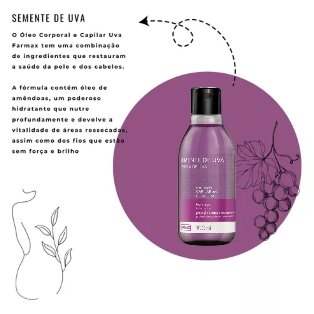 Óleo Semente De Uva Farmax Capilar E Corporal 100ml