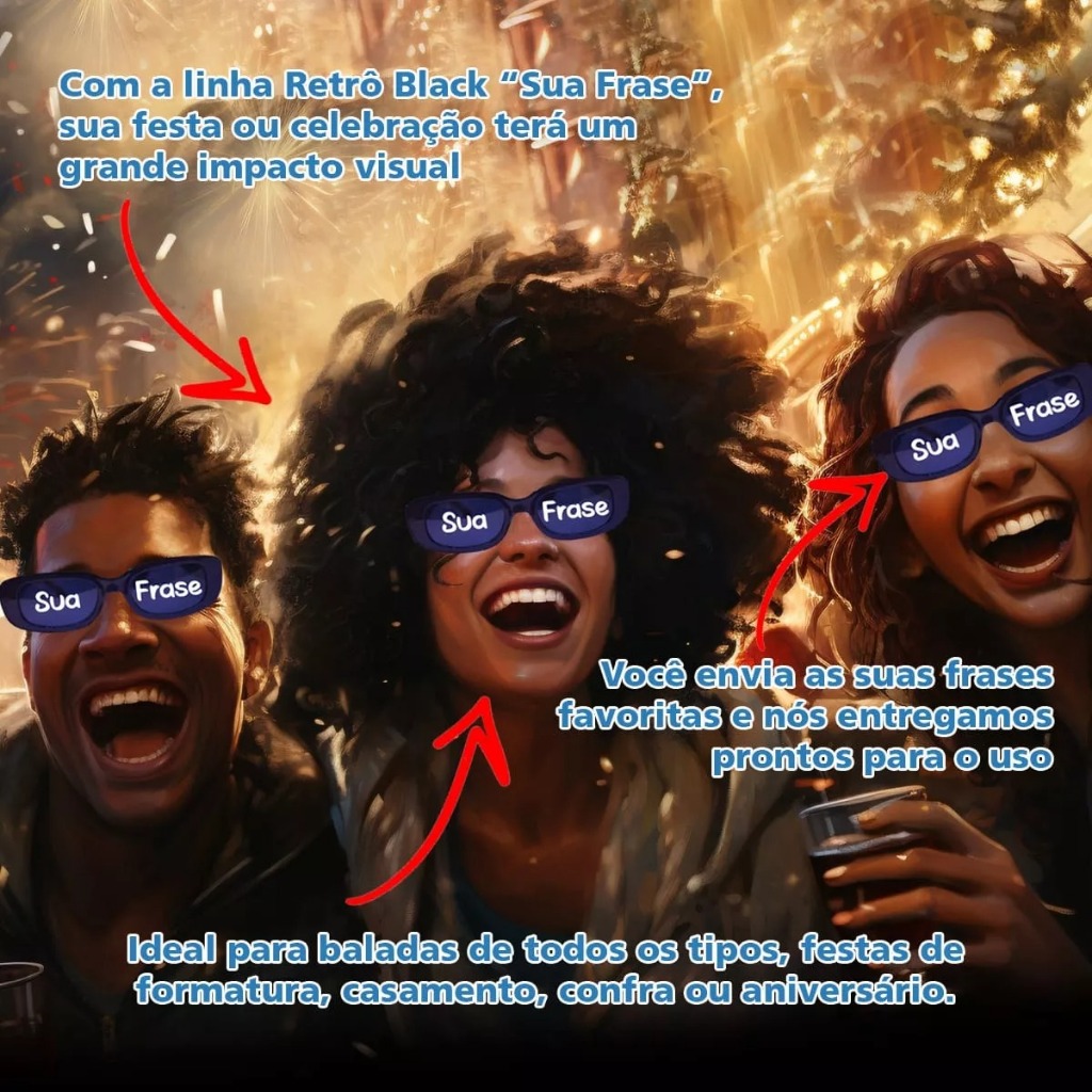 Kit 10 Óculos Retro De Festa Lente Personalisada Casamento