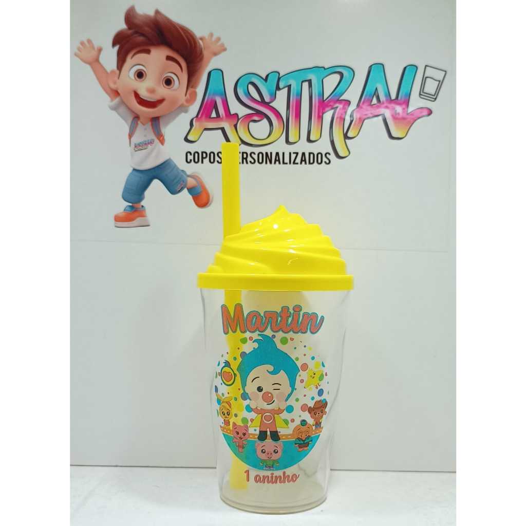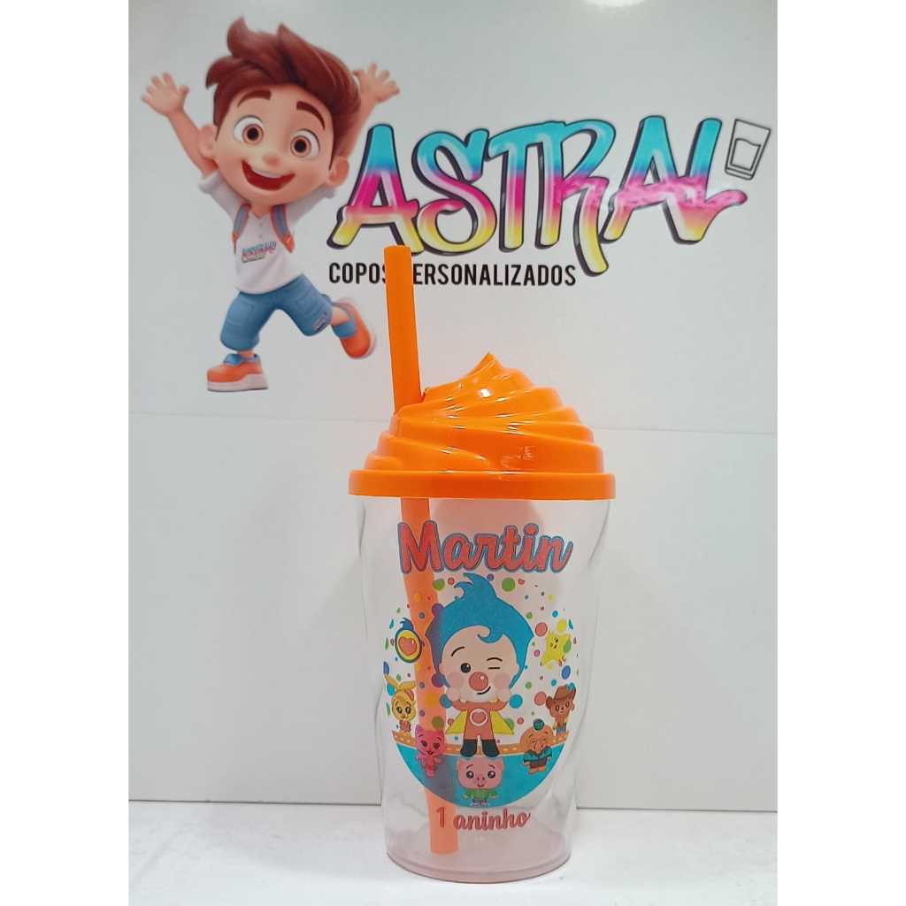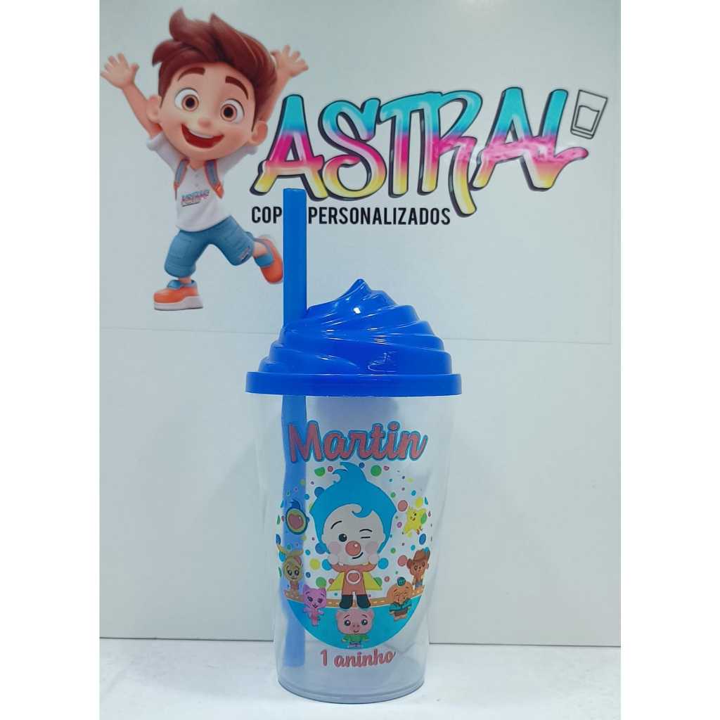 KIT COPO TWISTER PERSONALIZADO 300ML PALHAÇO PLIM PLIM (TAMPA CHANTILLY)