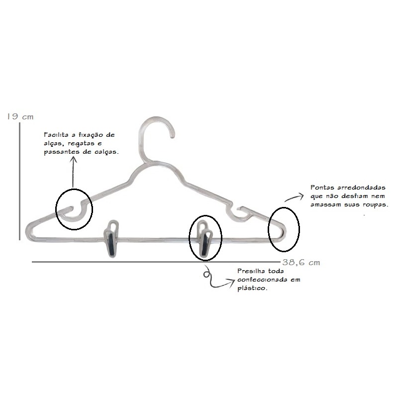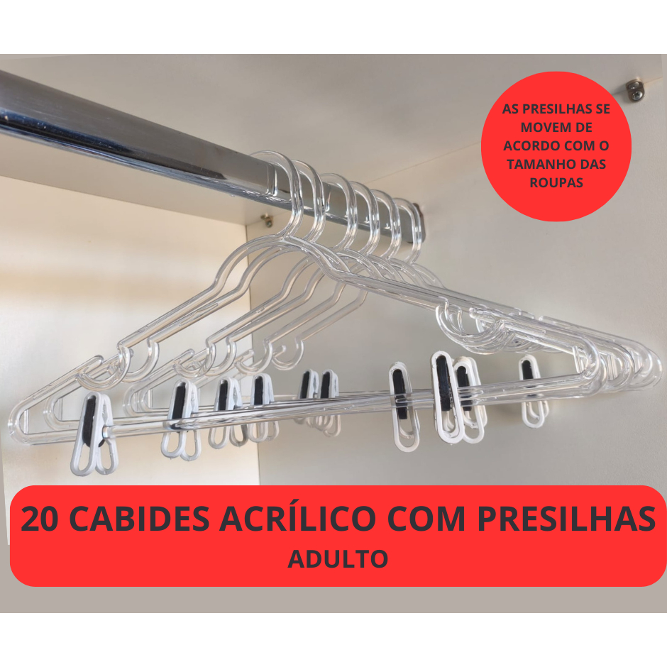 kit 20 CABIDES ACRÍLICO COM PRESILHAS REFORÇADO- adulto-transparente