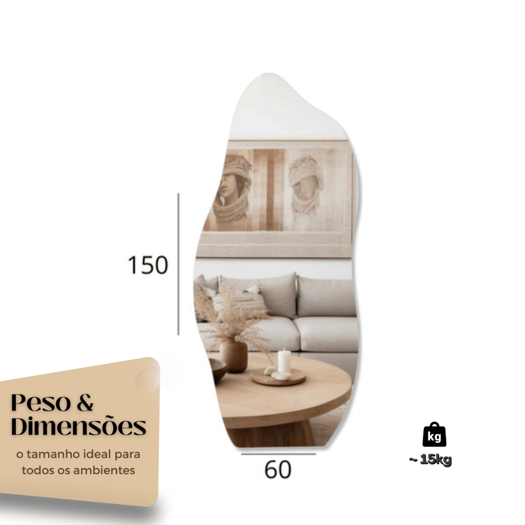 Espelho Orgânico Corpo Inteiro 150x60cm OG-06 Quarto Sala Banheiro Decoração Decorativo de Parede