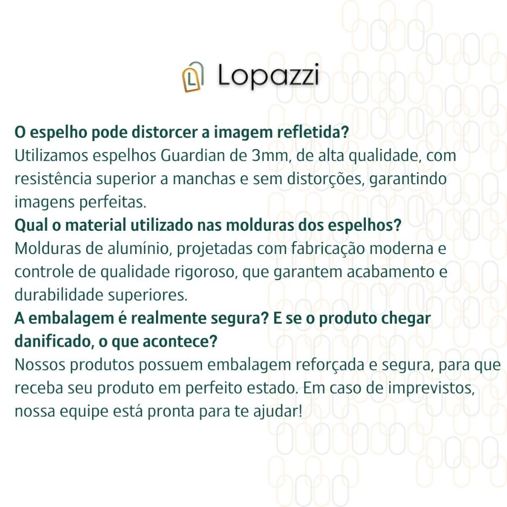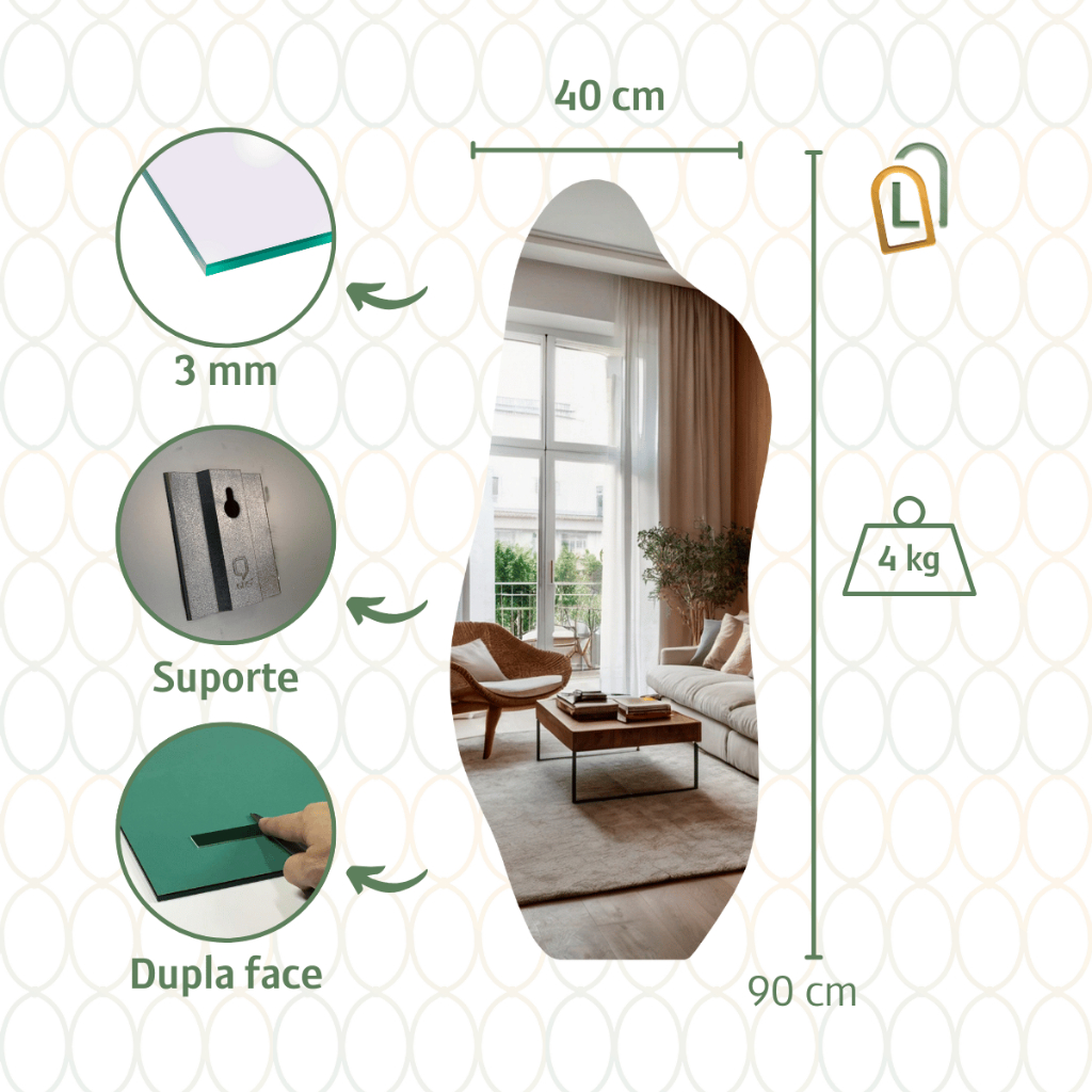Espelho Lopazzi Grande Corpo Inteiro Decorativo Polido Moderno 90x40cm Quarto Sala Banheiro