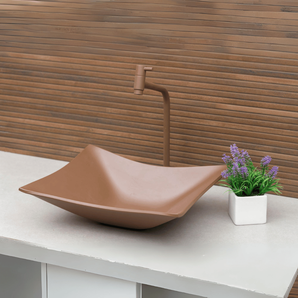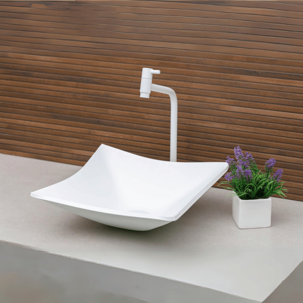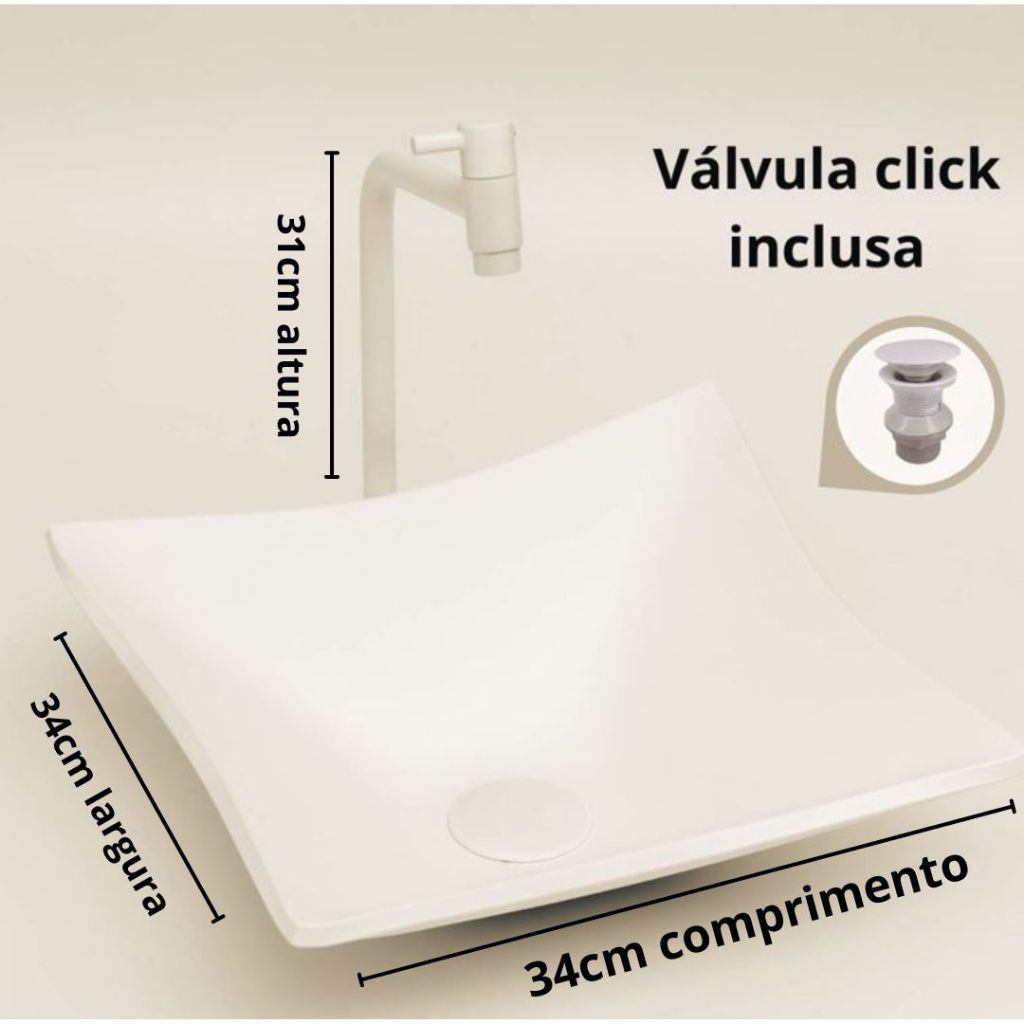CUBA QUADRADA PIA DE VIDRO PARA BANHEIRO COM 34CM + VÁLVULA CLICK INTELIGENTE COR MATTE FOSCA
