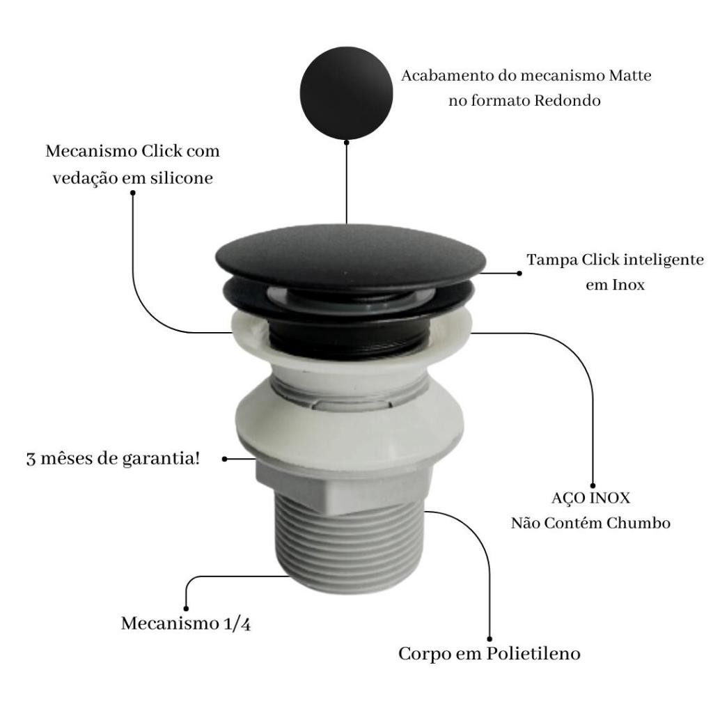 KIT LOPAZZI CUBA BANHEIRO RETRÔ 30cm FOSCO + VÁLVULA CLICK FOSCO