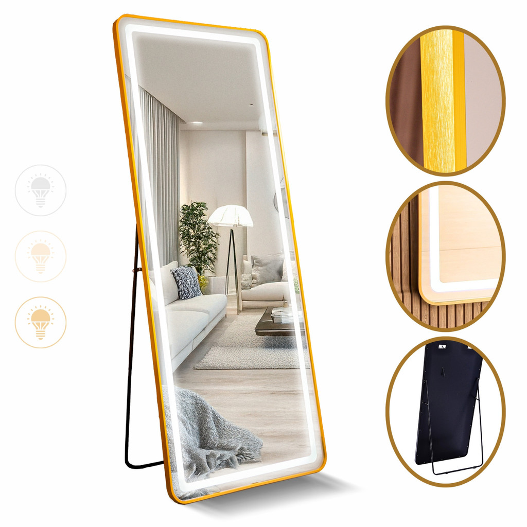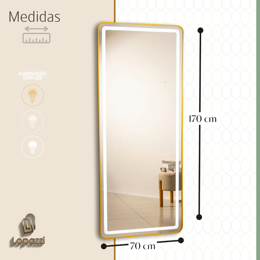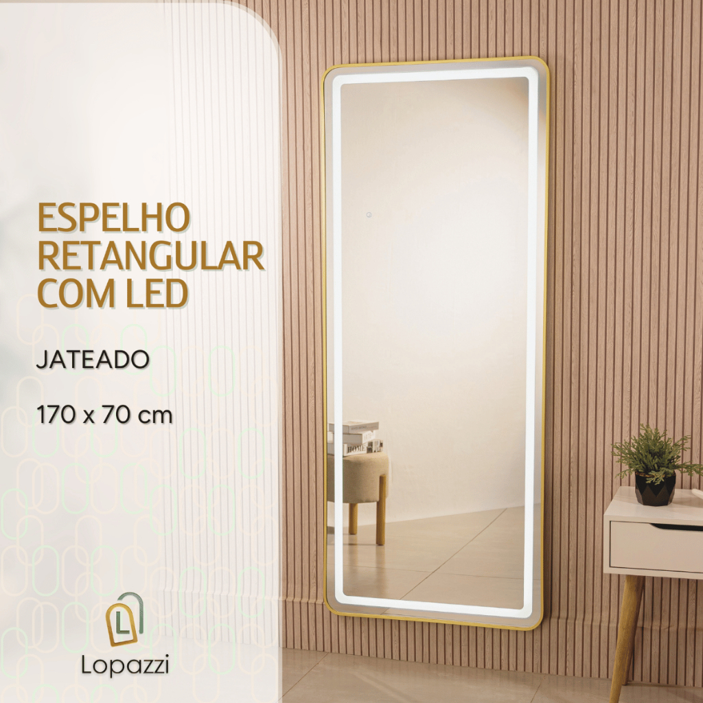 Espelho Retangular 170X70 com Suporte de Chão + LED Jateado 3 Intensidades Decorativo