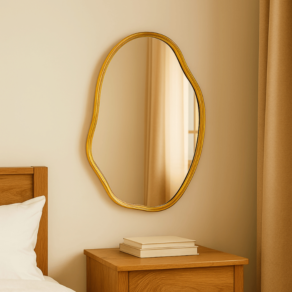 Espelho Orgânico Lopazzi Com Moldura em Alumínio Borda 70x50cm Banheiro Lavabo Decorativo Decoração
