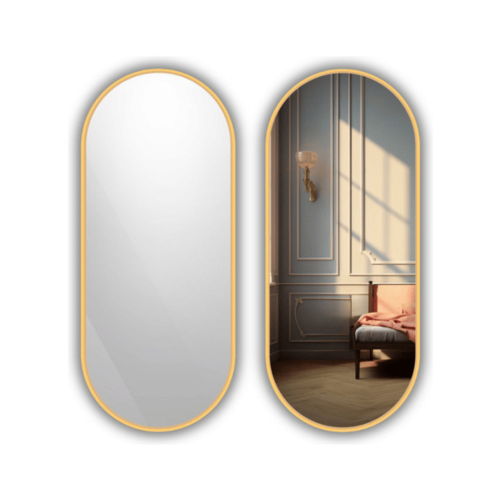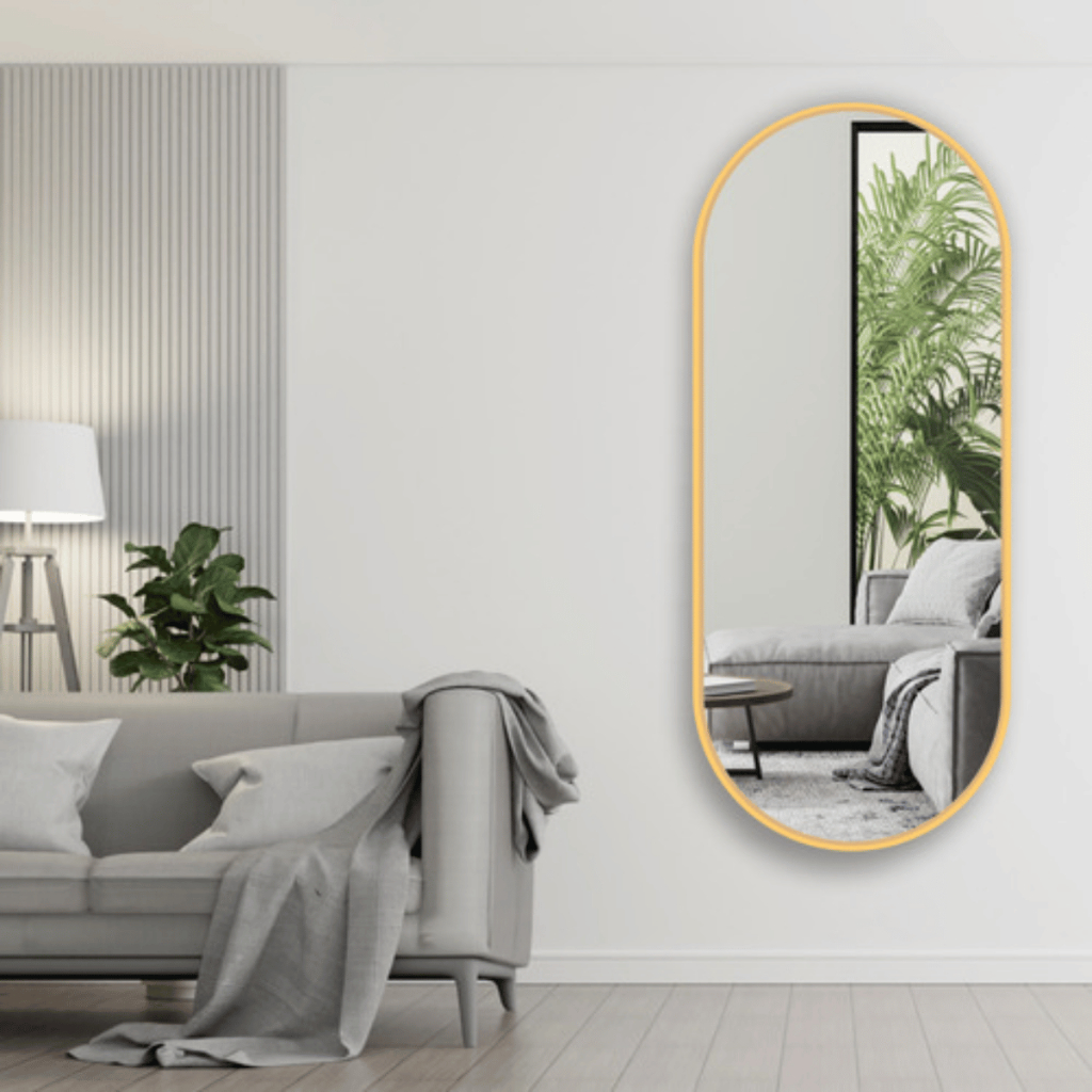 Espelho Oval Grande Corpo Inteiro 150x40cm Com Moldura Alumínio Para Quarto Sala Decorativo