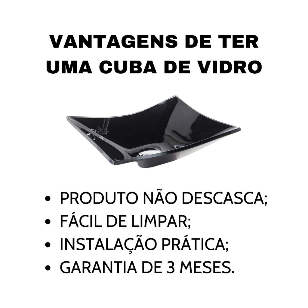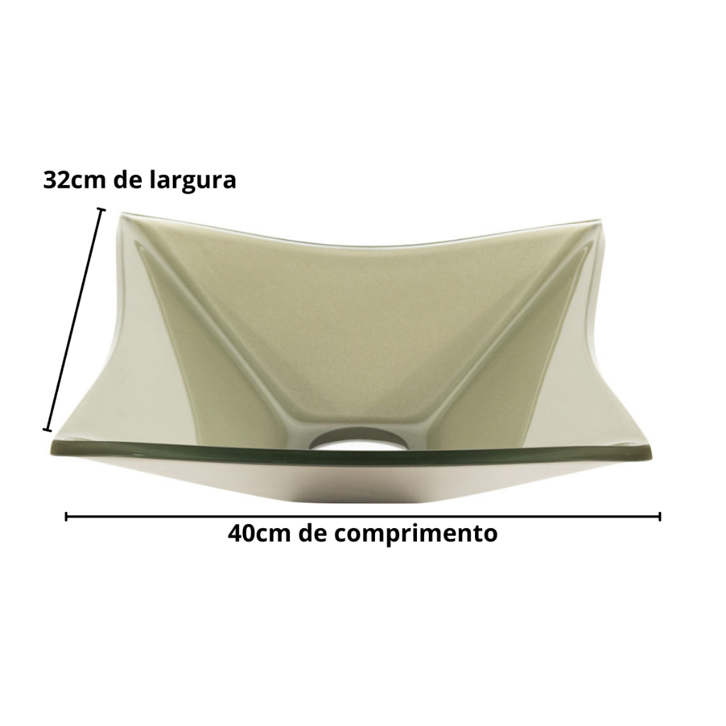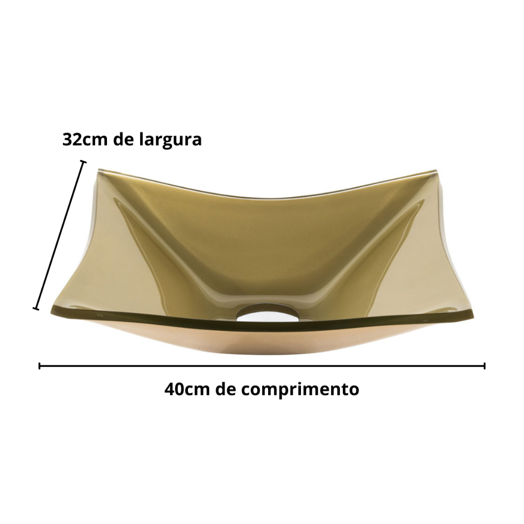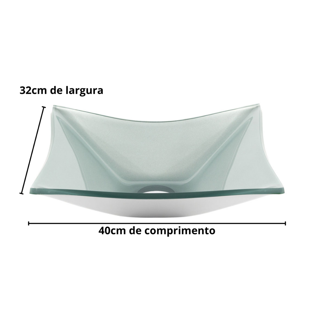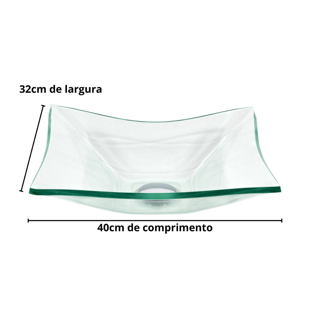 CUBA DE VIDRO RETANGULAR P/ BANHEIROS E LAVABOS 40X30- MODELO DE APOIO 8MM