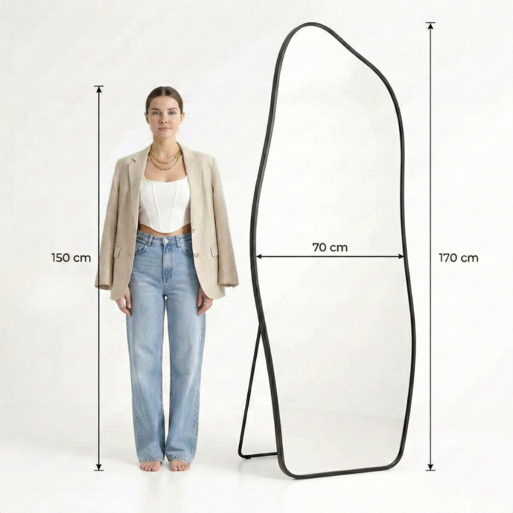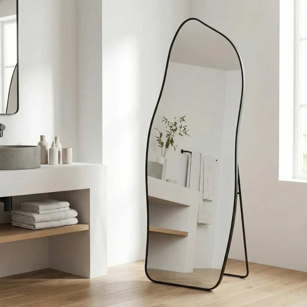 Espelho Orgânico Flame Corpo Inteiro Lopazzi 170x70cm Com Moldura de Alumínio Quarto Sala Decorativo