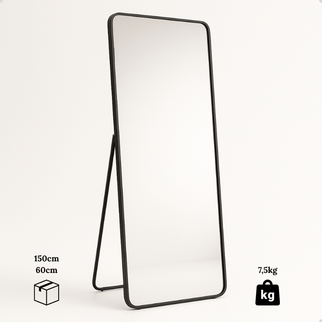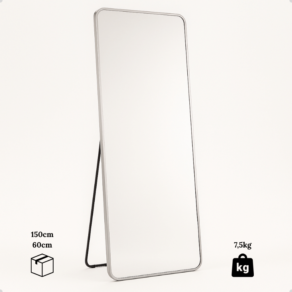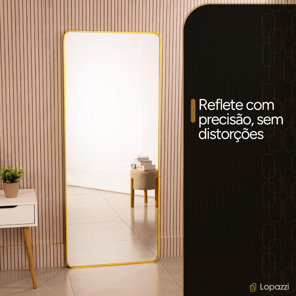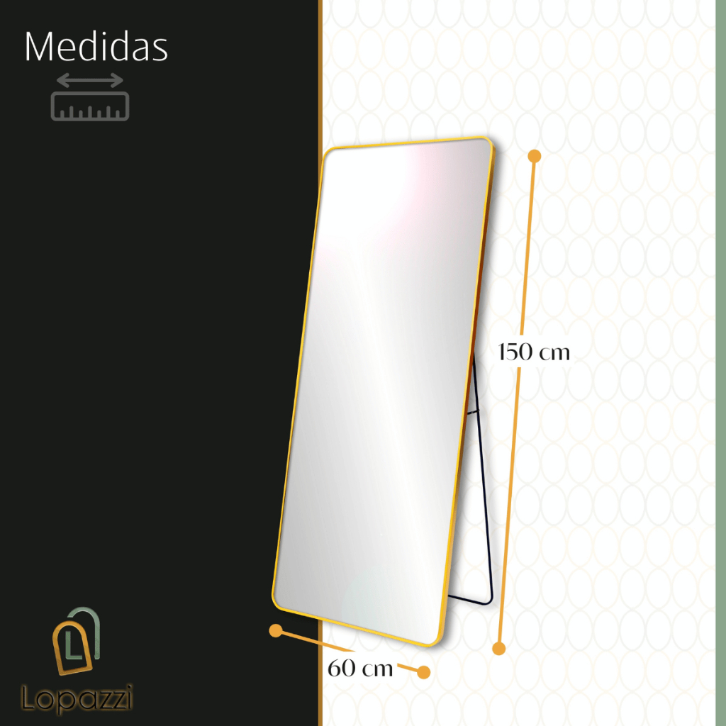 Espelho Retangular Corpo Inteiro 150x60 Com Suporte de Chão Moldura Alumínio Quarto Sala Decorativo