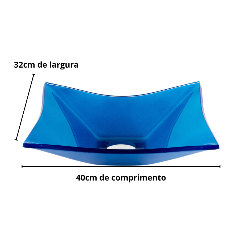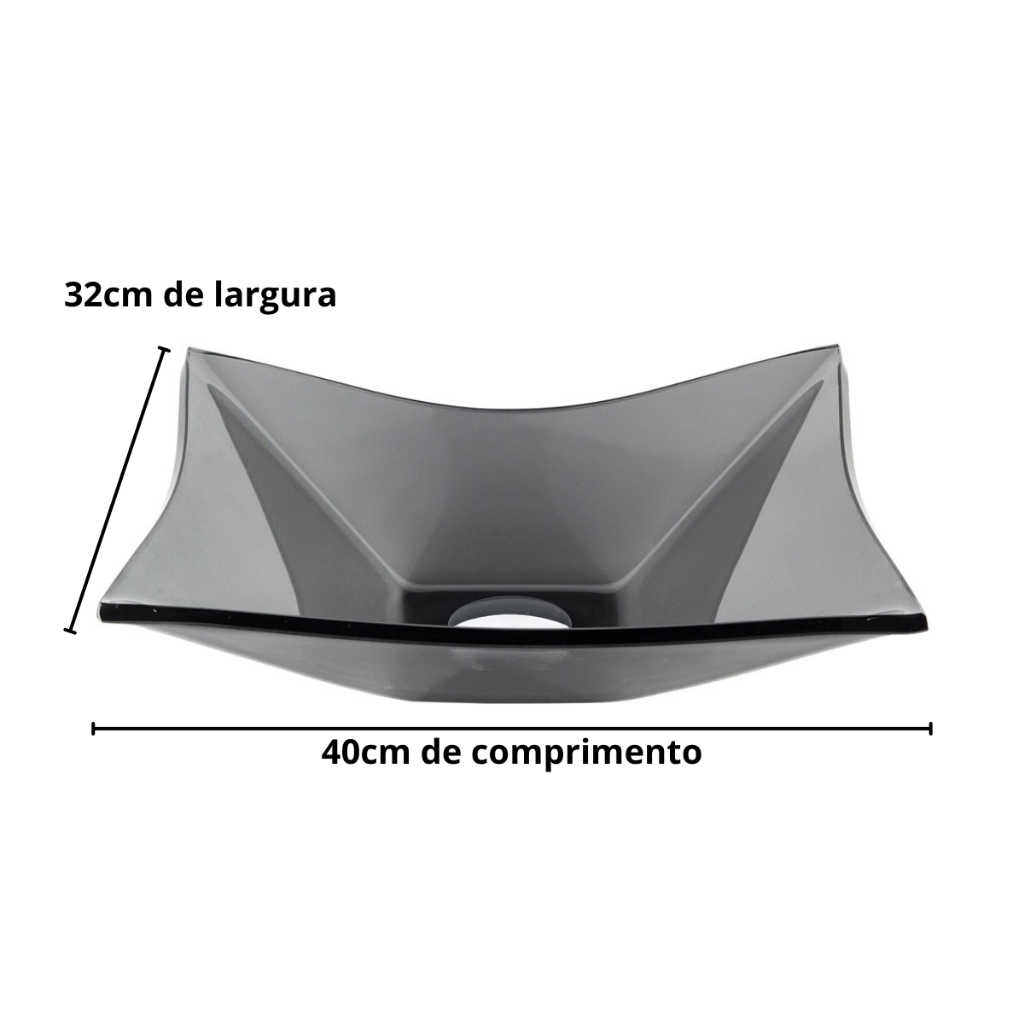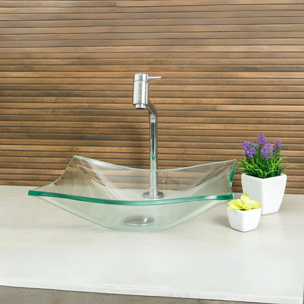 Cuba Pia de Vidro Retangular Para Banheiro Lavabo 40X32 + Torneira Link e Válvula Click Inteligente