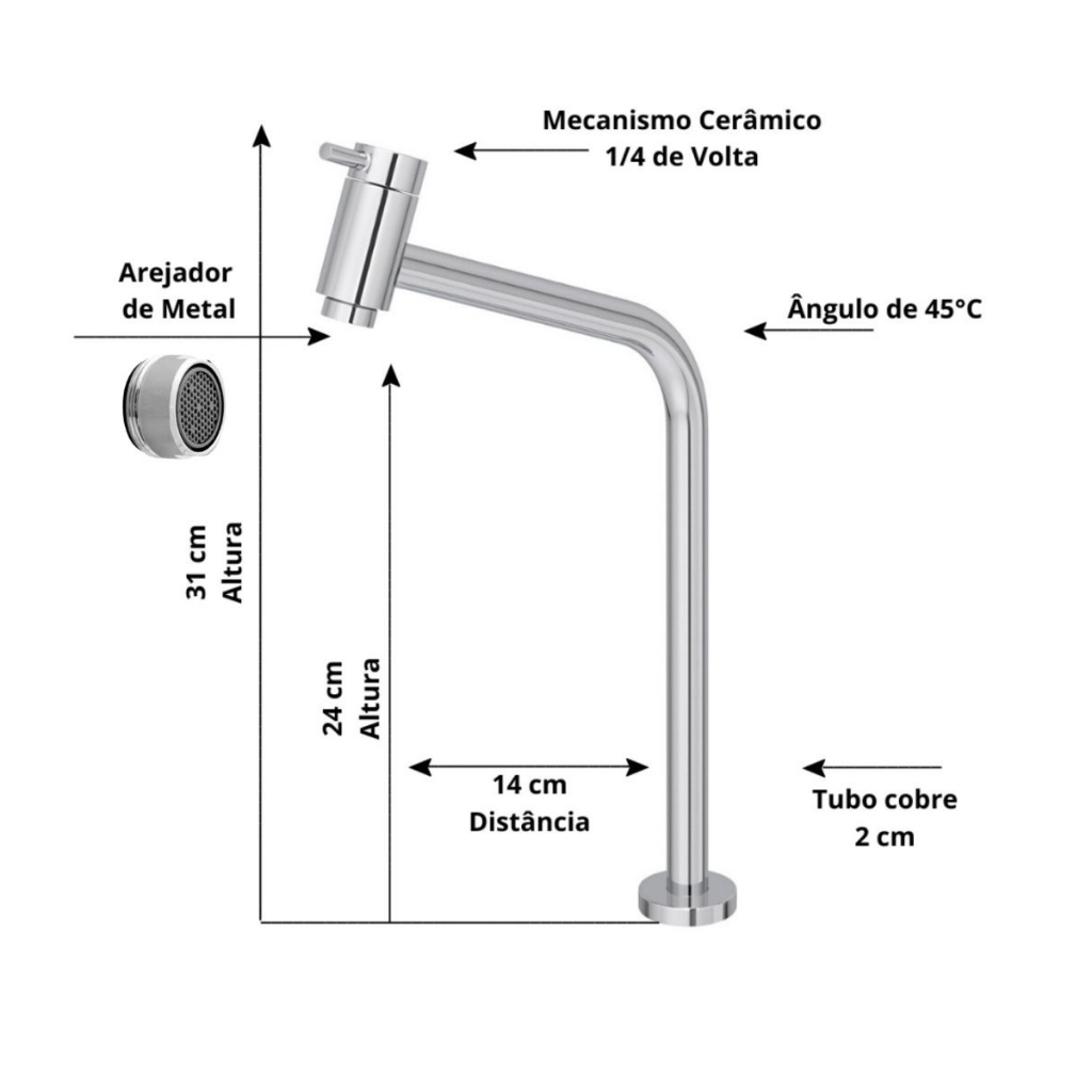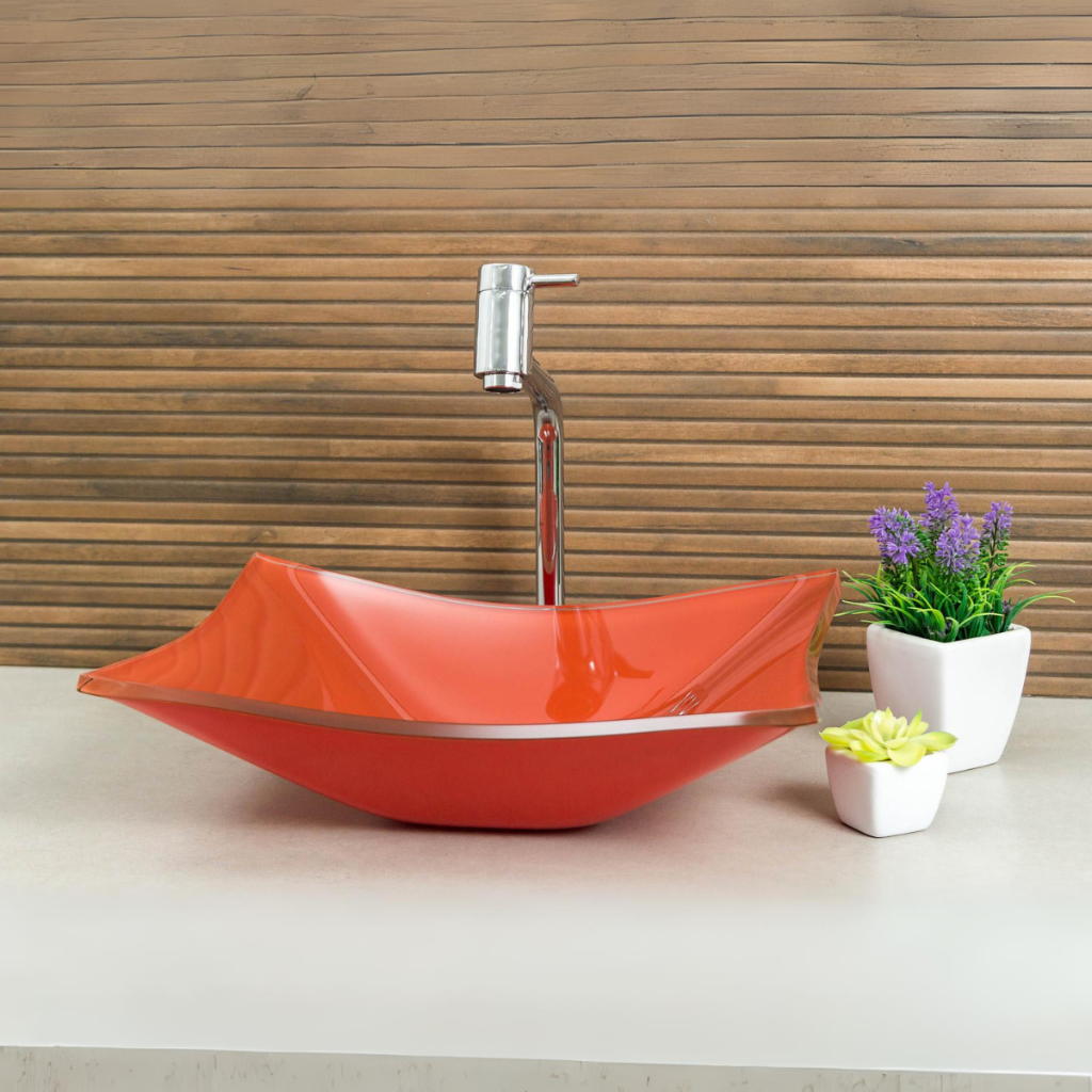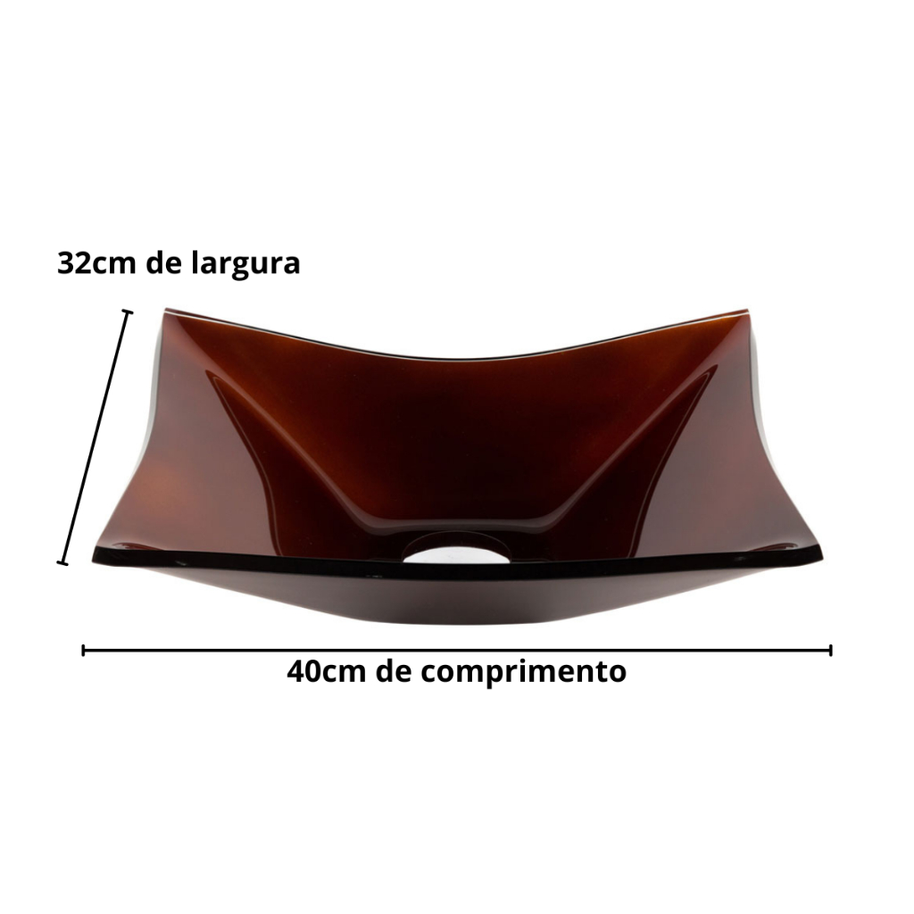 Cuba Pia de Vidro Retangular Para Banheiro Lavabo 40X32 + Torneira Link e Válvula Click Inteligente