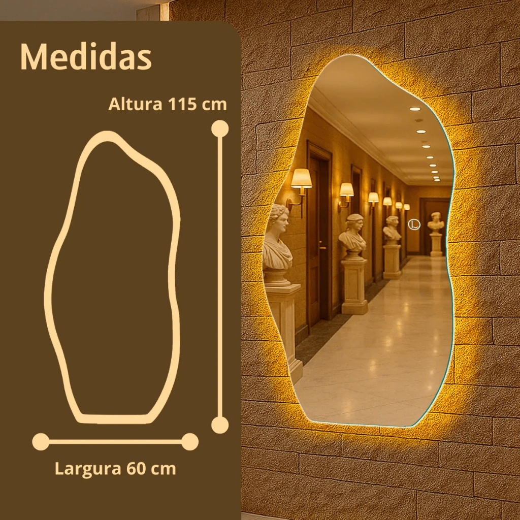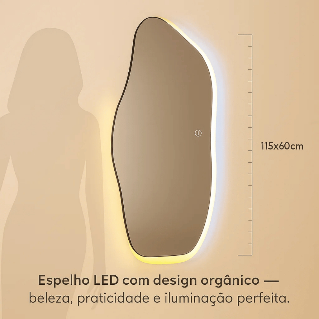 Espelho Orgânico Lopazzi Grande Corpo Inteiro Com Led Touch Quente/Frio 115x60 Quarto Sala Decoração