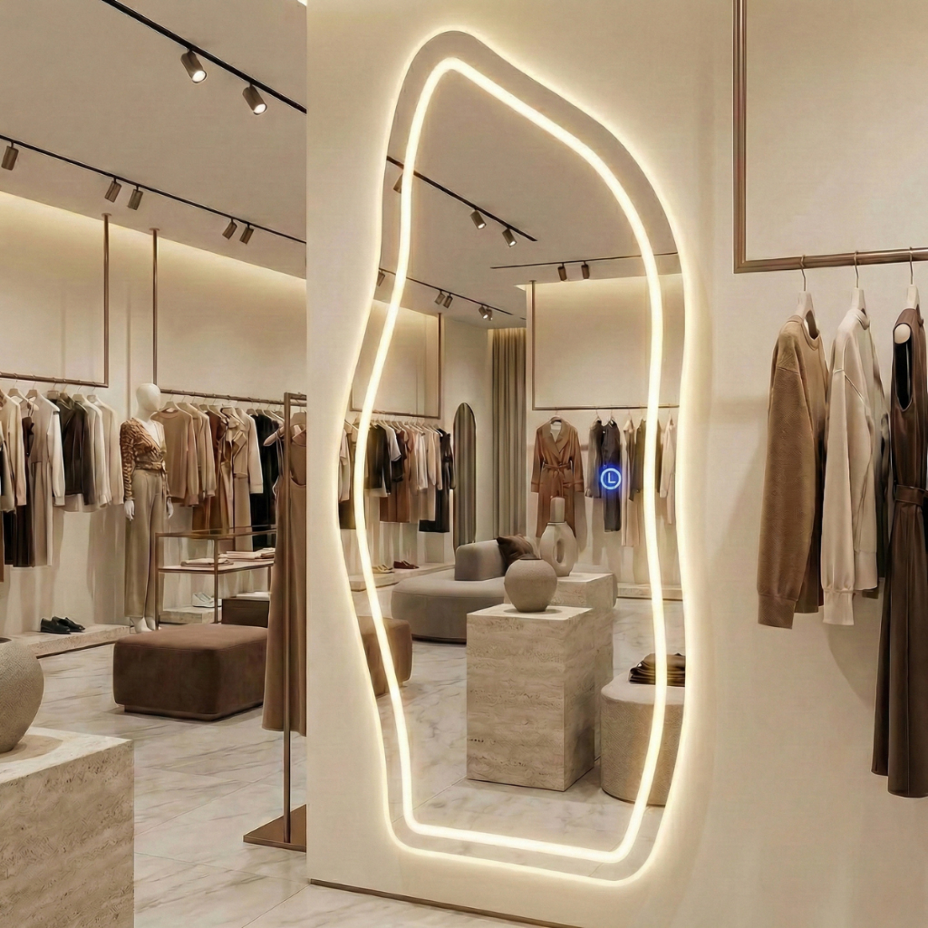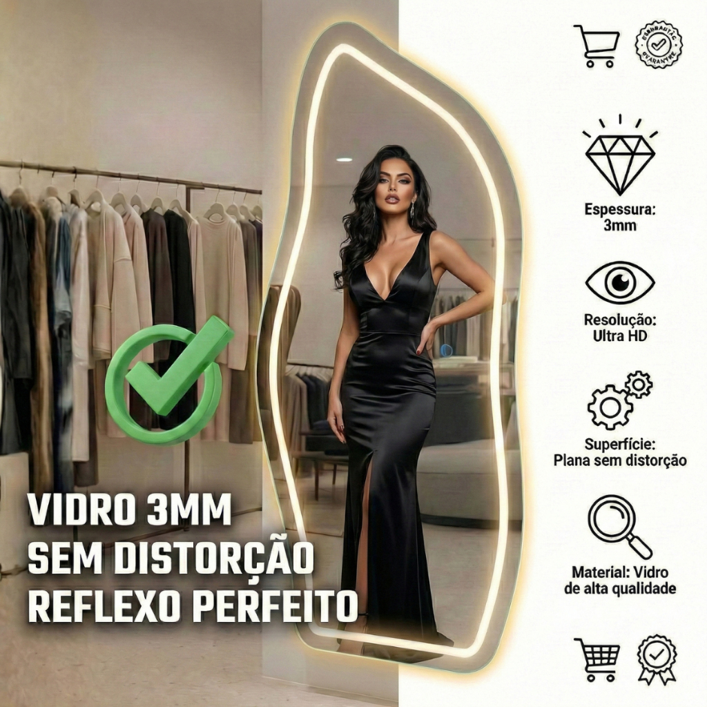 Espelho para Fotos e Vídeos LED 170x70 Corpo Inteiro Grande Touch 3 Tons de Luz Ring Light Closet