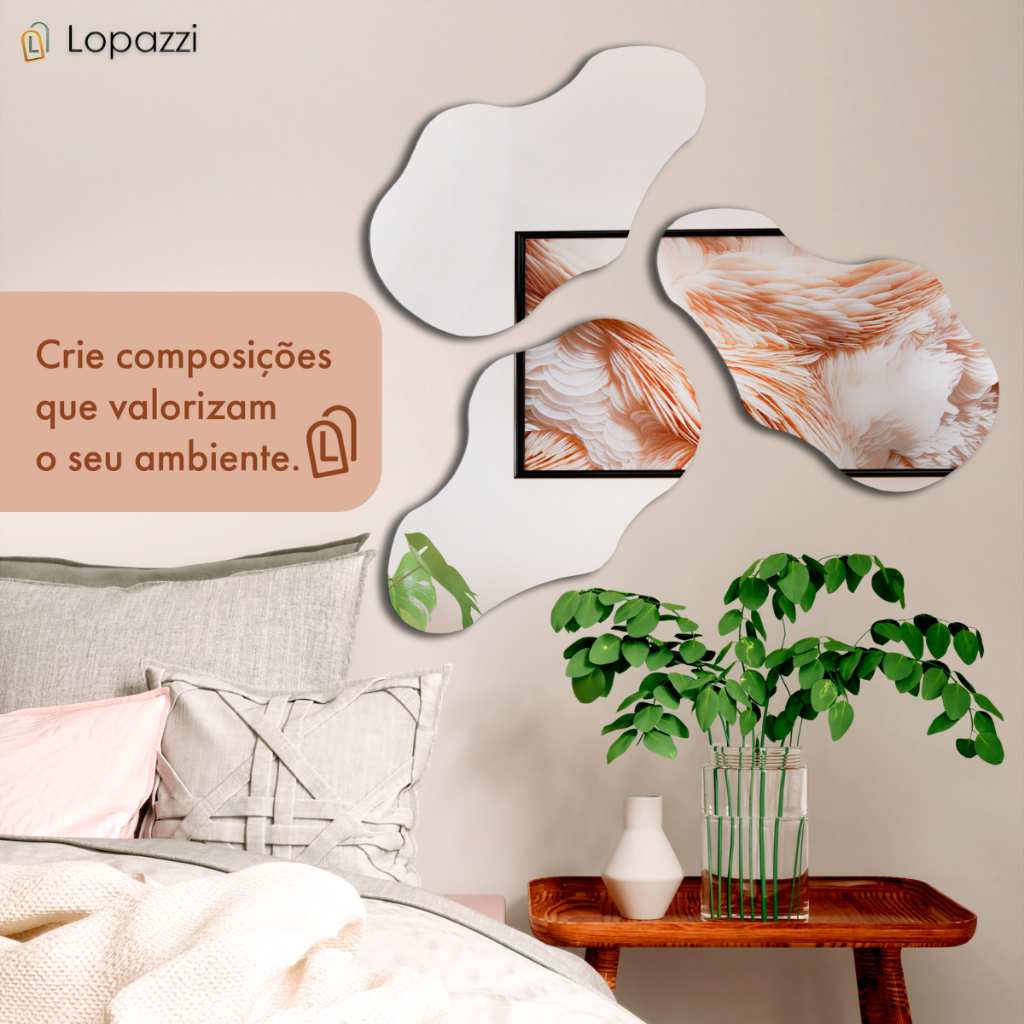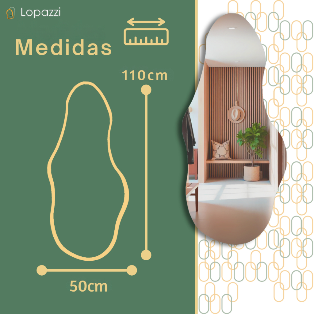 Espelho Piza Corpo Inteiro Lopazzi Orgânico Polido Suporte 110x50cm Quarto Sala Hall Closet Lavabo