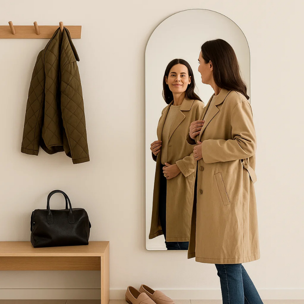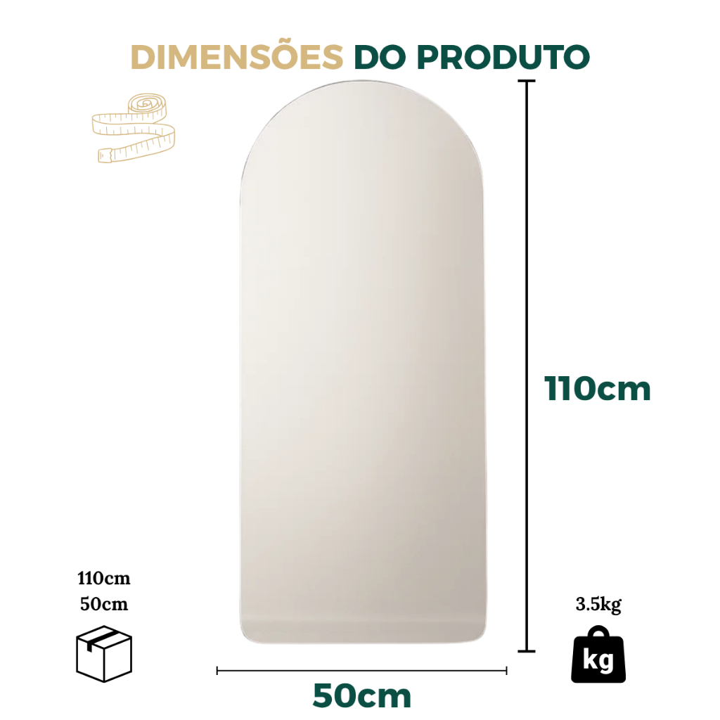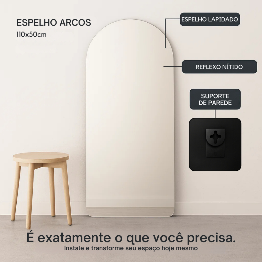 Espelho Corpo Inteiro Lopazzi Base Reta Arcos Janela Polido 110x50cm Quarto Sala Hall