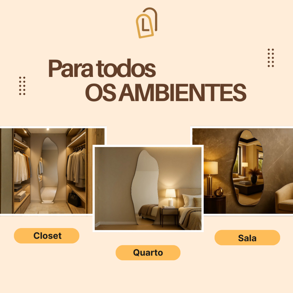Espelho Lopazzi Orgânico Decorativo 170cm Corpo Inteiro Lapidado Design Moderno Sala Quarto