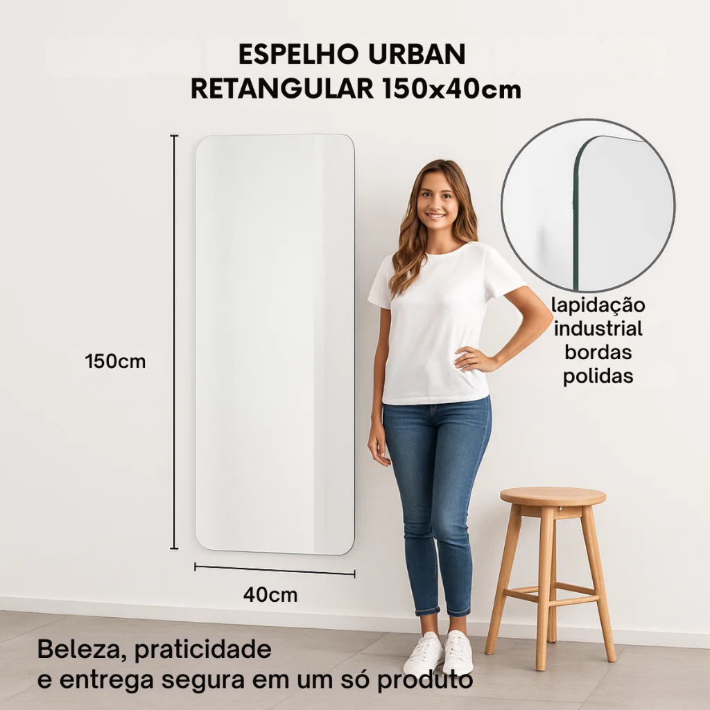 Espelho Corpo Inteiro Lopazzi Grande Retangular 150x40cm Polido Quarto Sala Hall Banheiro