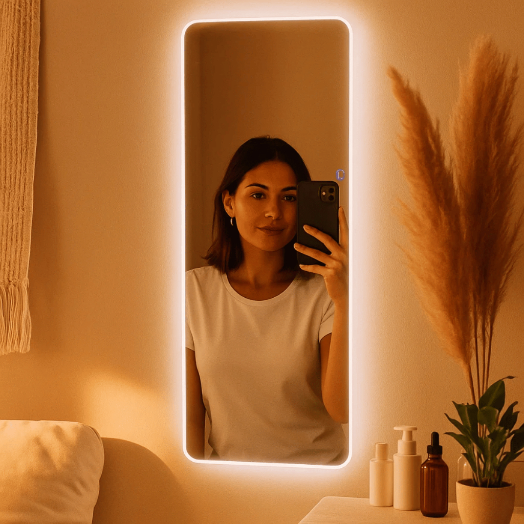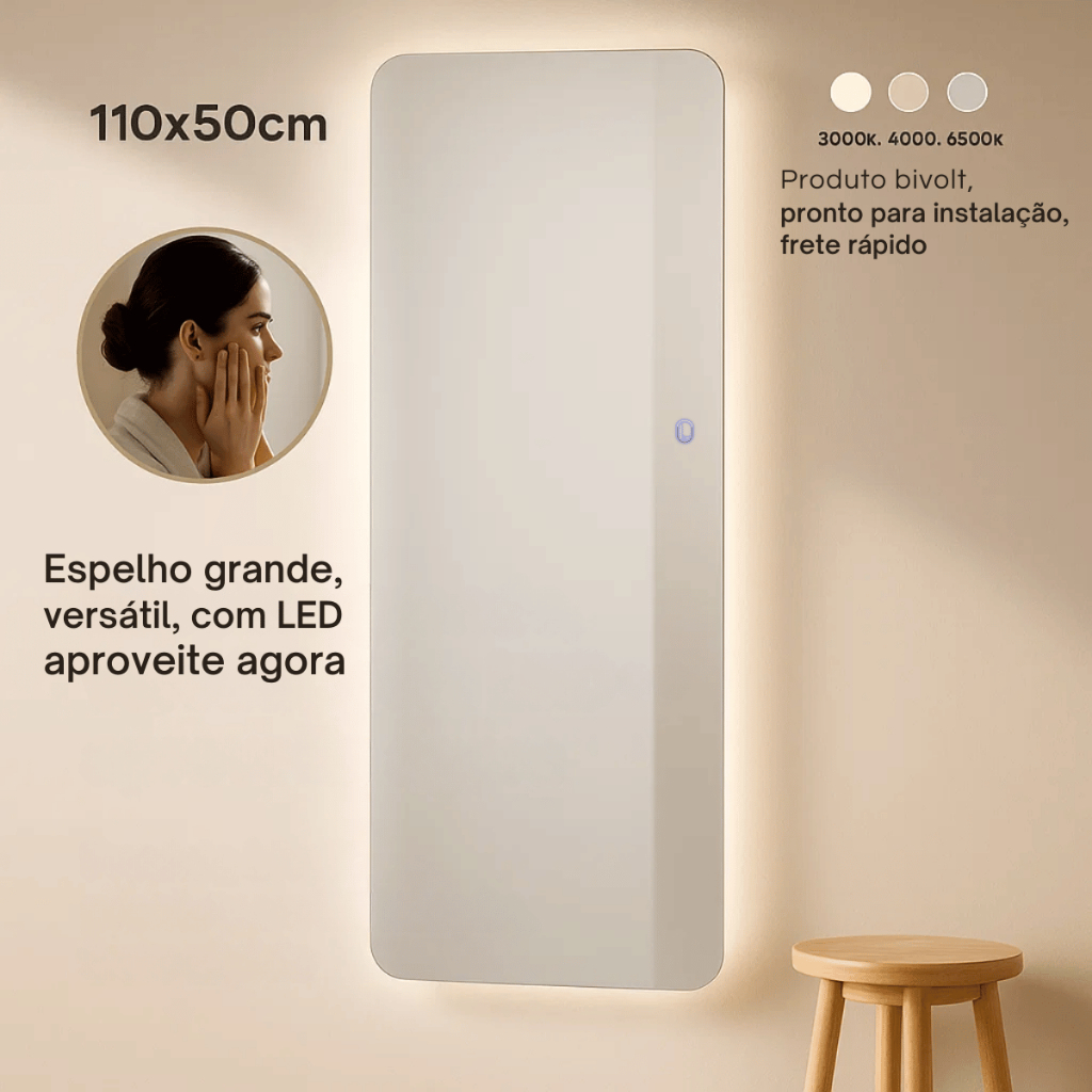 Espelho Retangular Corpo Inteiro 110x50cm Led Touch Quente Frio Decoração Pinterest Quarto Banheiro