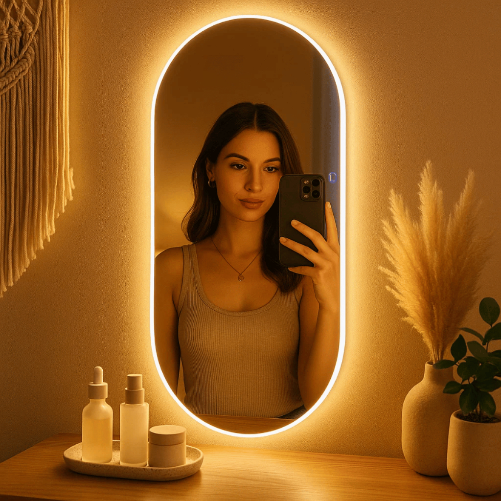 Espelho Orgânico Corpo Inteiro com Led Touch 110x50cm Quente Frio Pinterest Decoração Quarto Sala