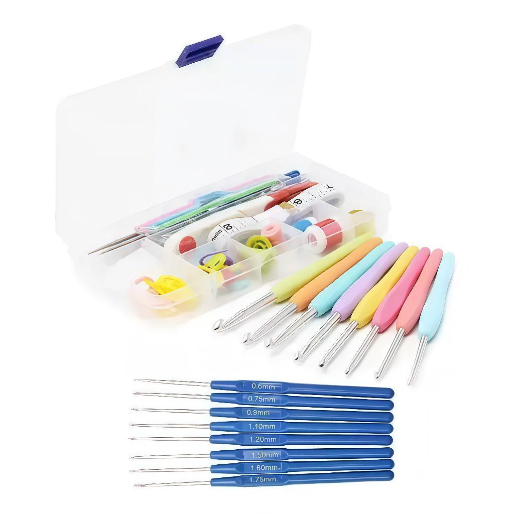 Kit Crochê Completo 53 Peças Para Amigurumi - Agulhas com Cabo Soft +Tesoura +Acessórios, Prático de Usar