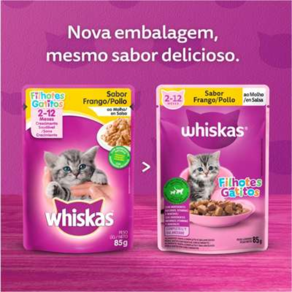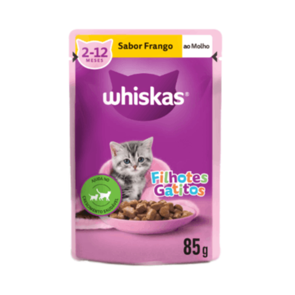 Ração Úmida Whiskas Sachê Frango ao Molho para Gatos Filhotes - 20 Sachês de 85g