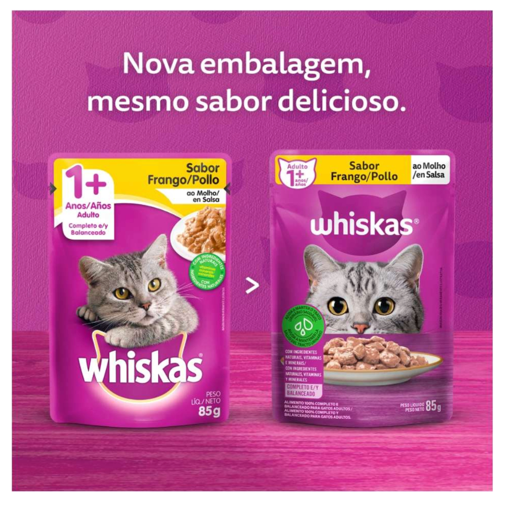 Ração Úmida Whiskas Sachê Frango ao Molho para Gatos Adultos - 20 Unidades de 85g