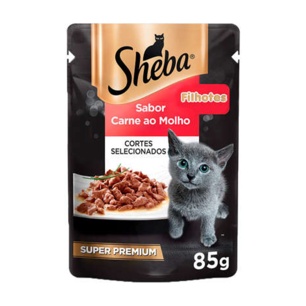 Ração Úmida Sheba Sachê para Gatos Filhotes Sabor Carne ao Molho - 20 Unidades de 85g