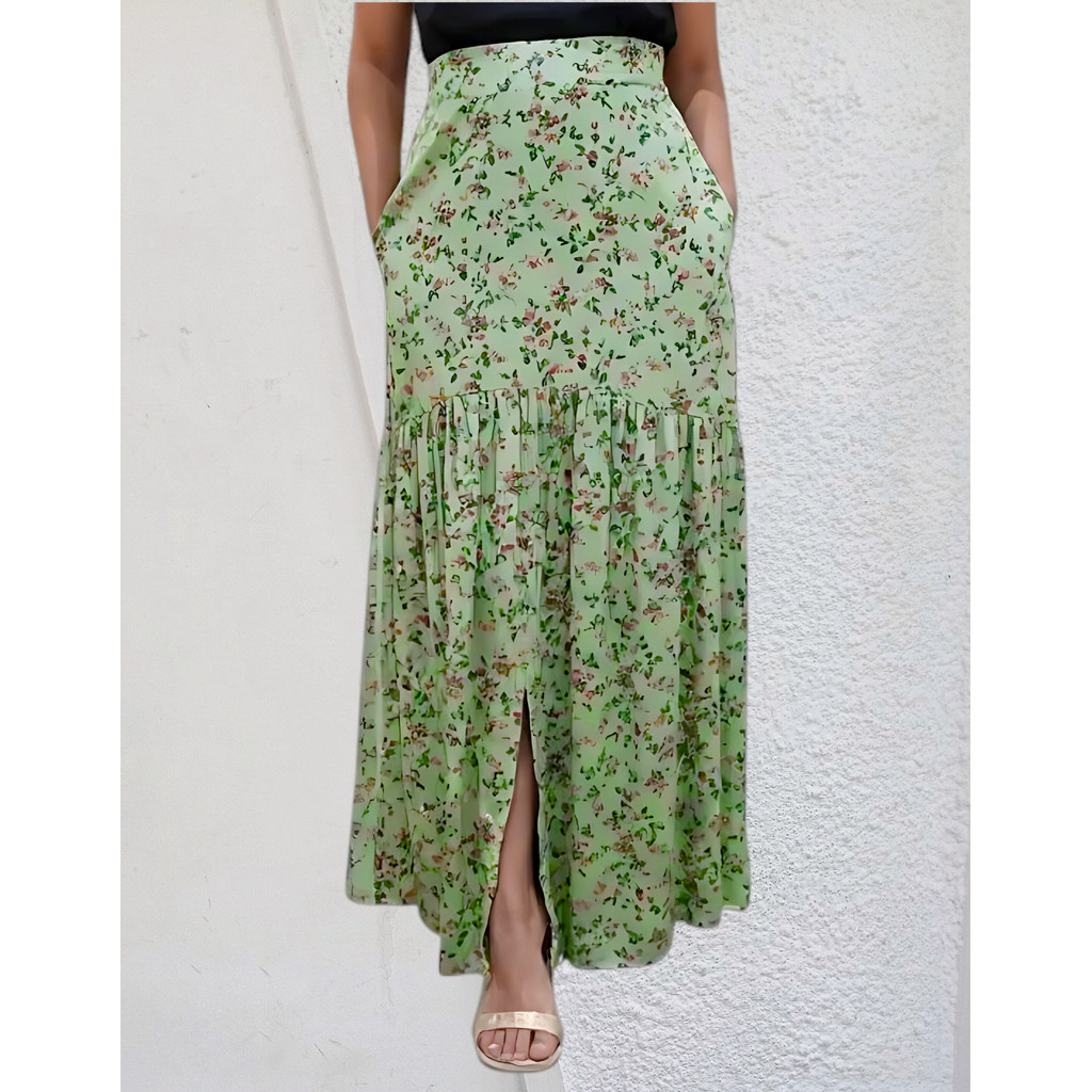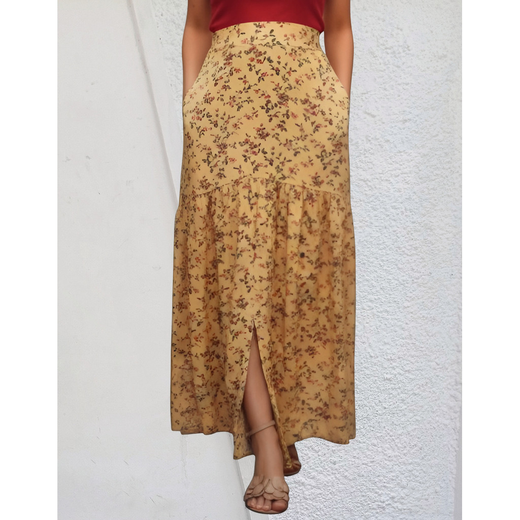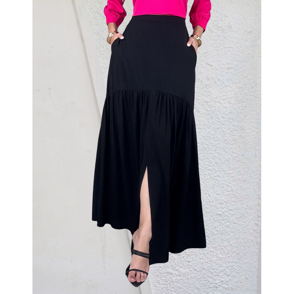 Saia Longa Em Viscolinho Fenda Na Frente E Bolsos Invisiveis