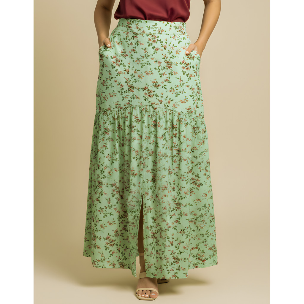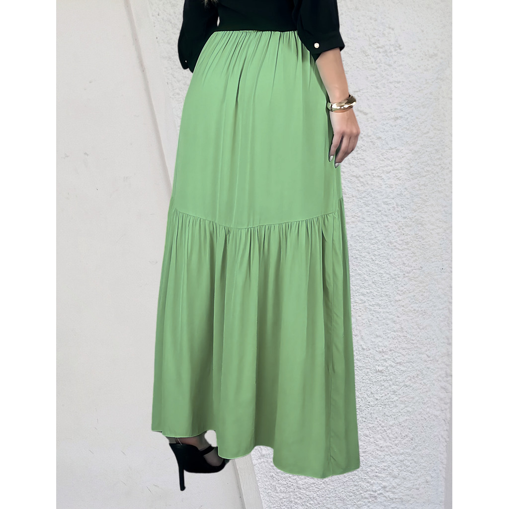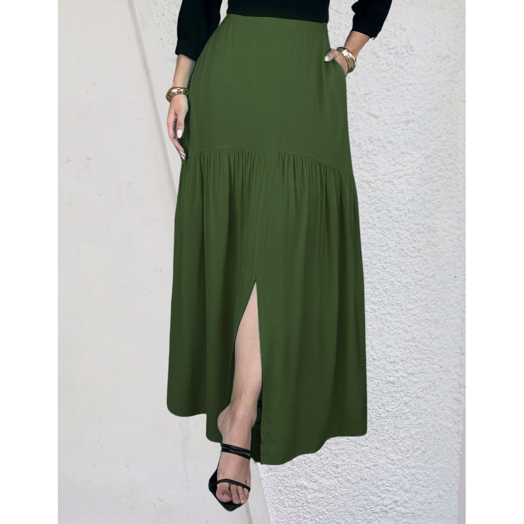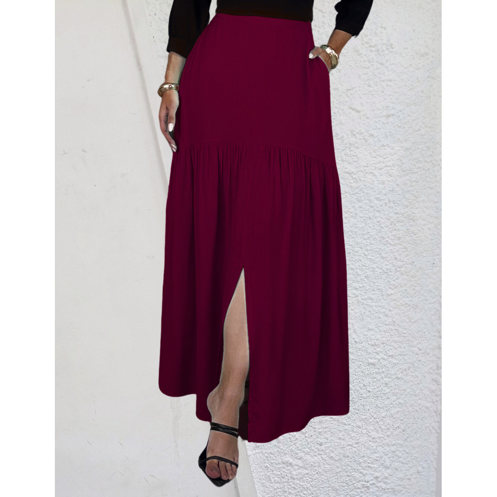 Saia Longa Em Viscolinho Fenda Na Frente E Bolsos Invisiveis