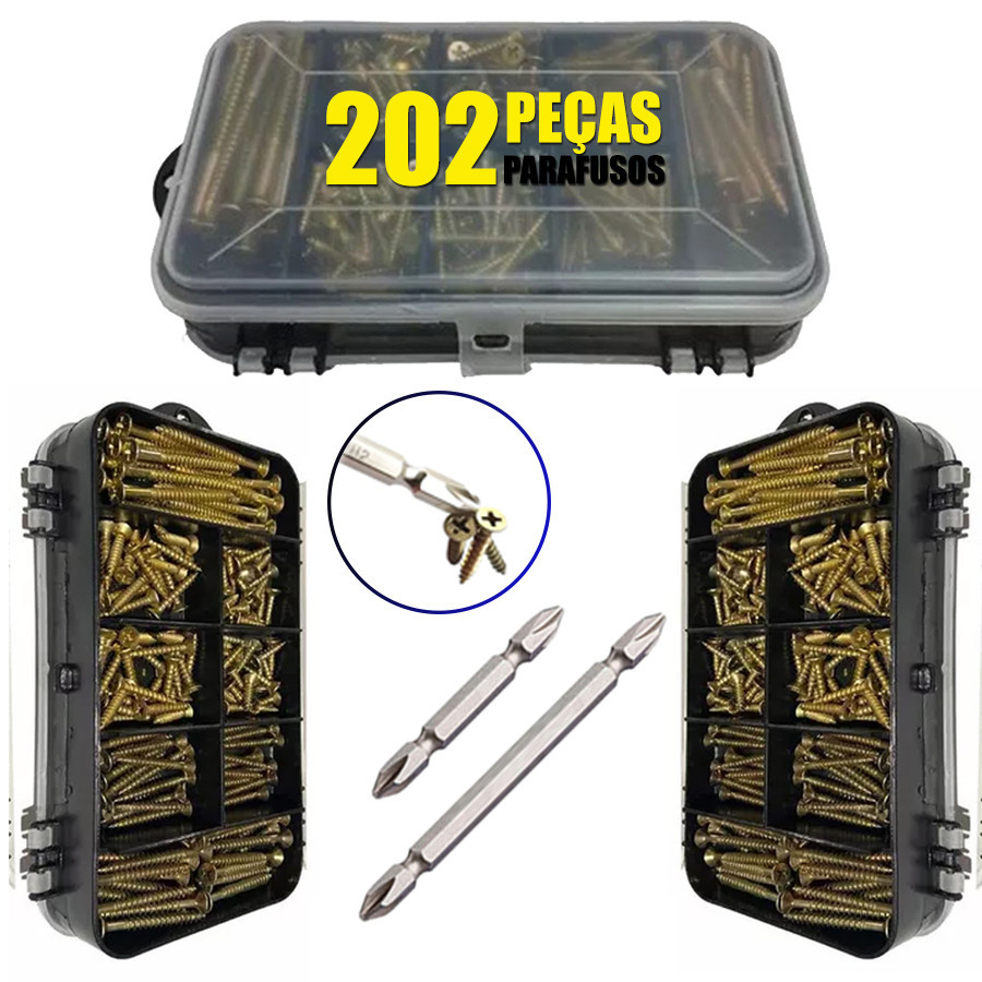 Kit 200 Parafusos Chipboard + Cx Organiza Marcenaria Reparos