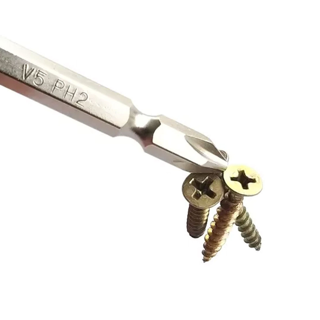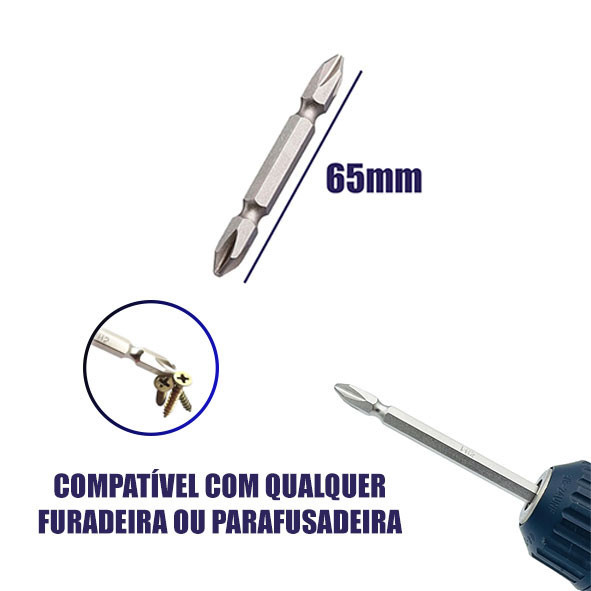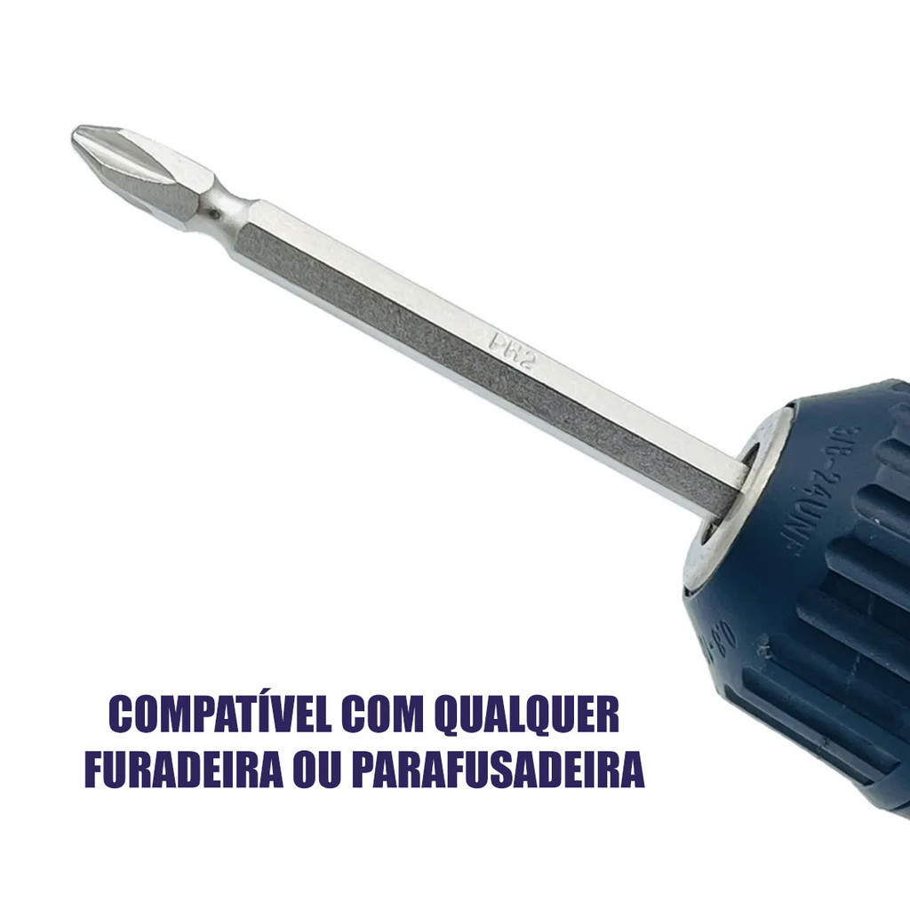 Ponta Chave Philips Niquelada 65mm PH2 CRV Dupla com imã para Furadeira Parafusadeira