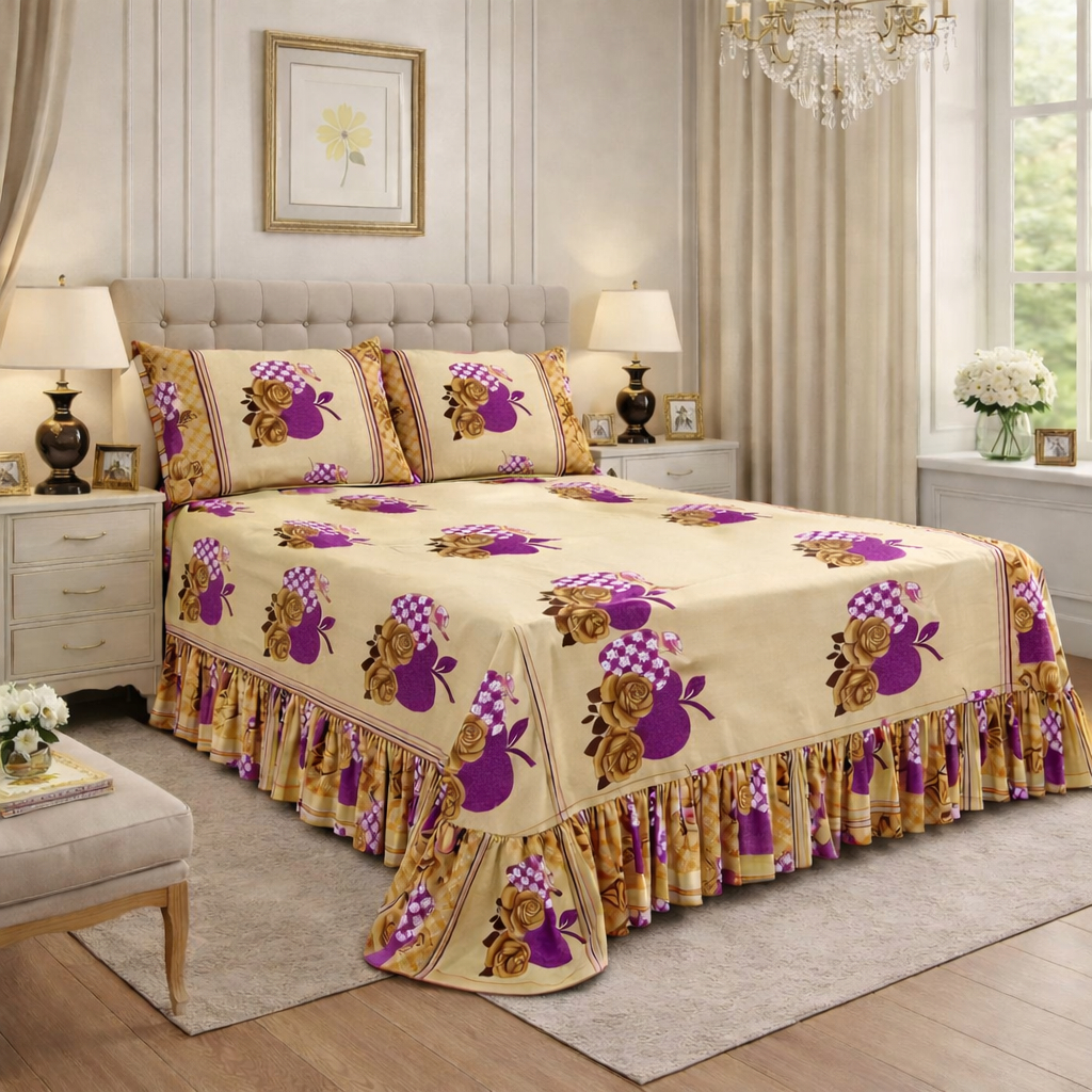 Kit Colcha Cobre Leito Queen/Box Yasmin 3D 2,70x2,60 100% Algodão 400 Fios + 2 Porta Travisseiros| *Oferta*