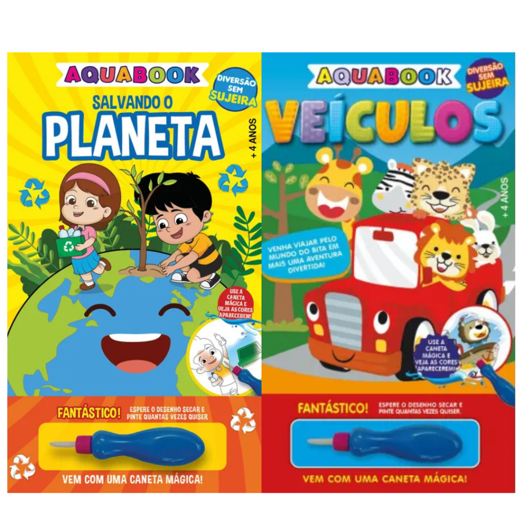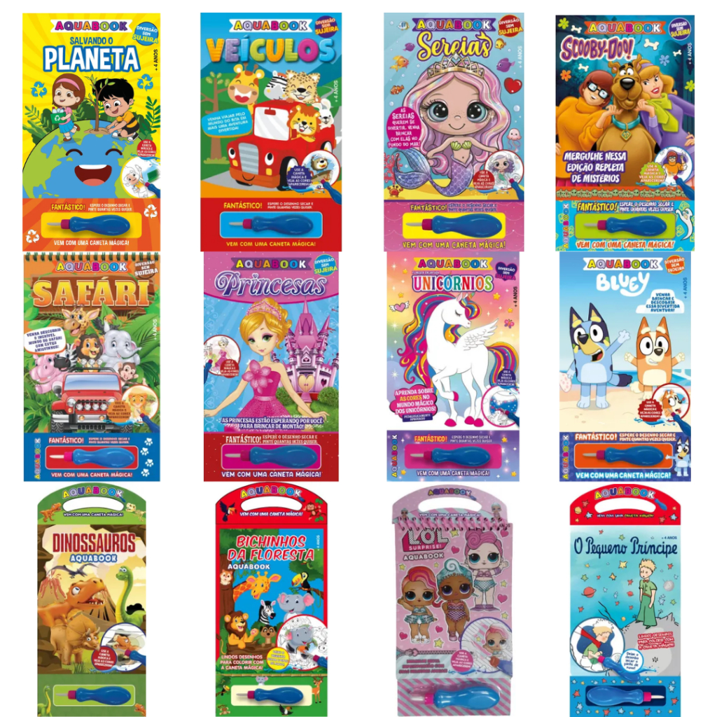 Livro Coleção Aqua book / Aquabook com caneta mágica Para Colorir Com Água